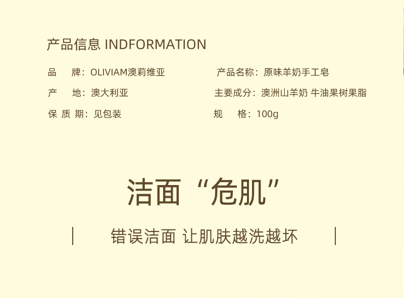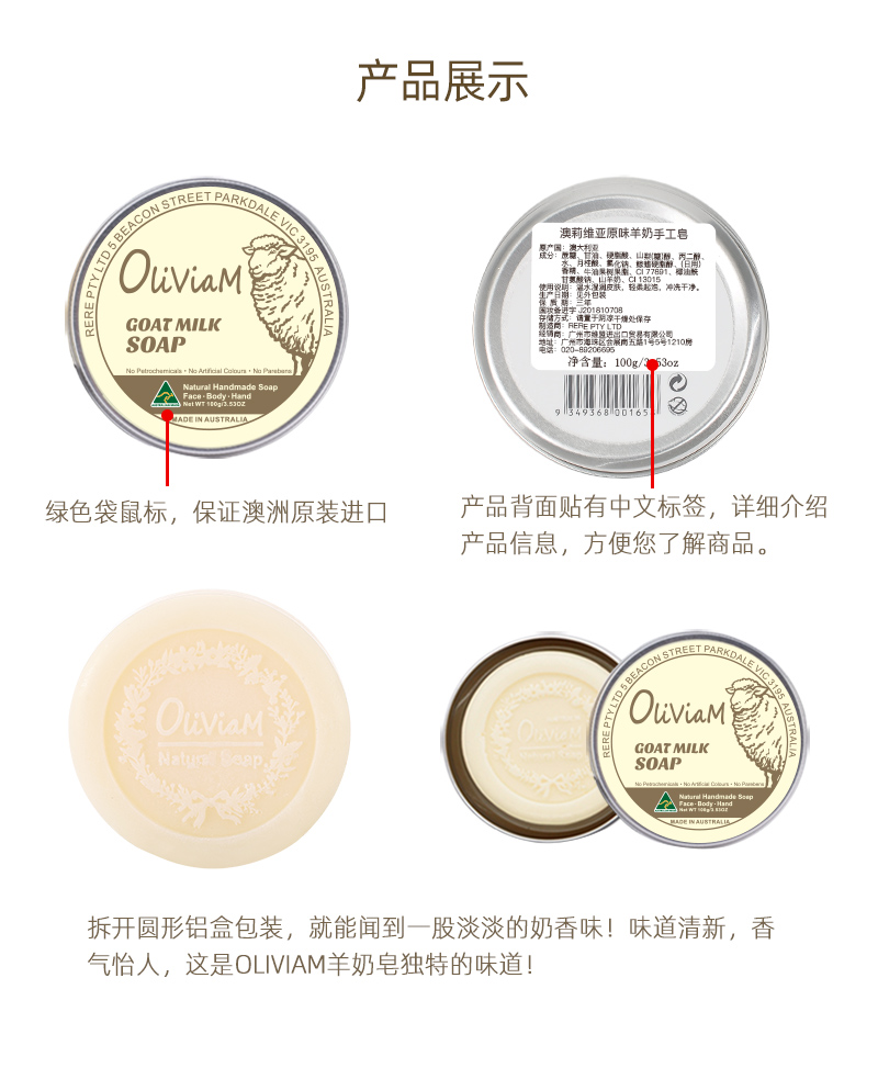 商品名称:Oliviam/澳莉维亚原味羊奶手工皂100g*2块(本土版)