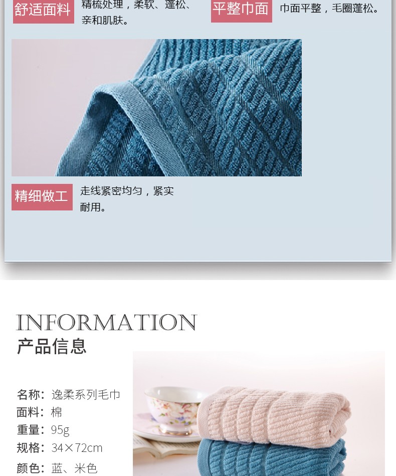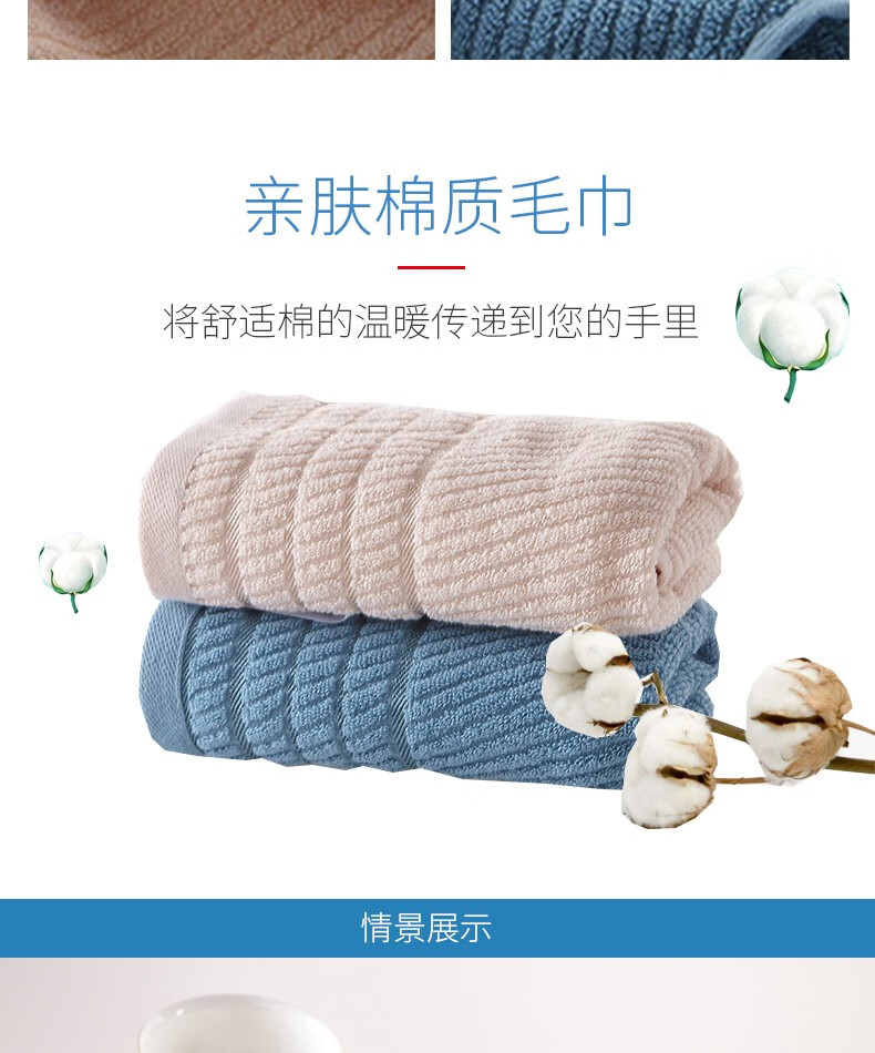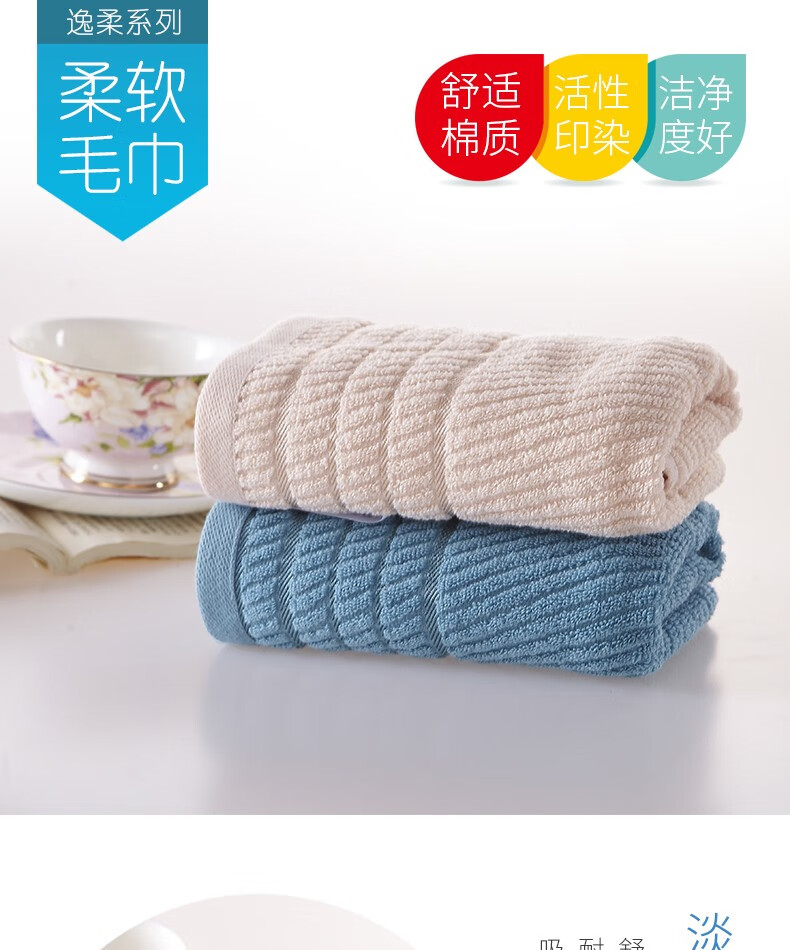 商品名称:恒源祥逸柔系列亲肤棉毛巾蓝色2条+米色2条