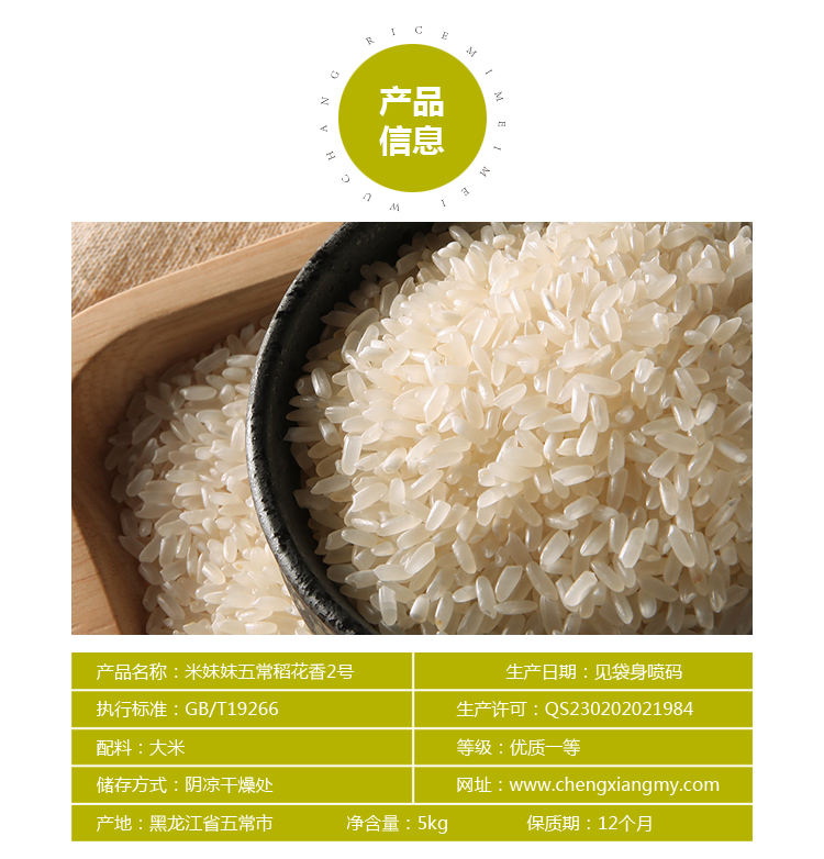 商品名称:MIMEIMEI/米妹妹五常稻花香2号精选大米5kg