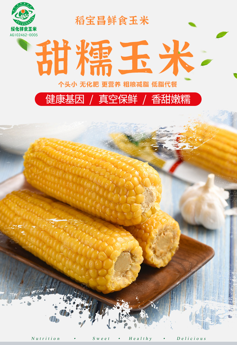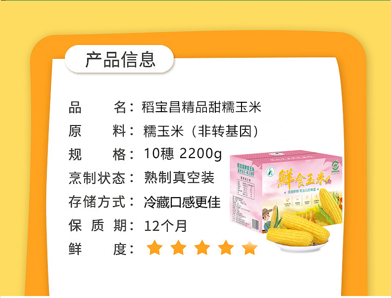 商品名称:稻宝昌非转基因鲜食甜糯玉米整箱220g*10根