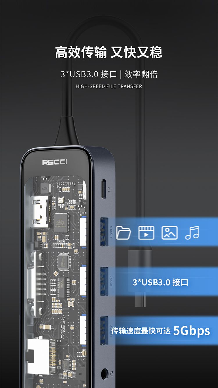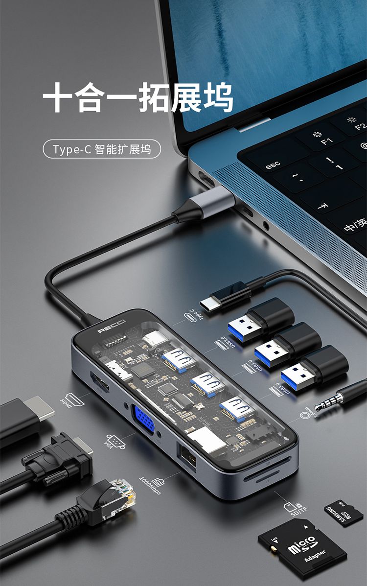 RECCI锐思RH22十合一HUB数据线转接口Type-C TO