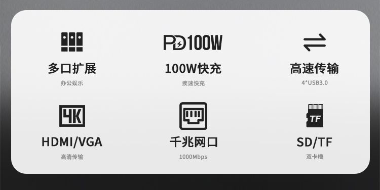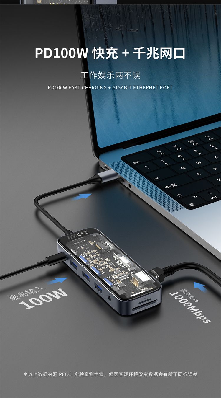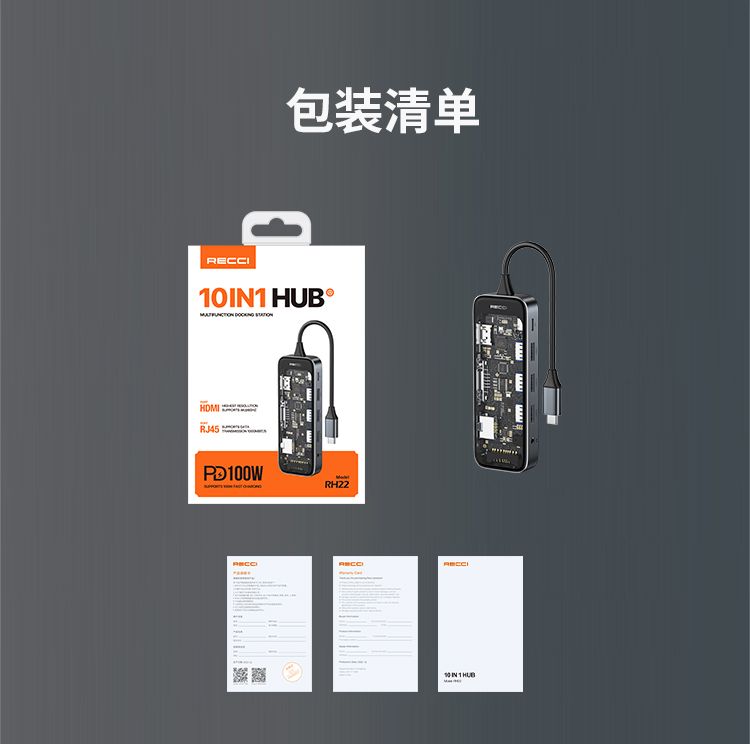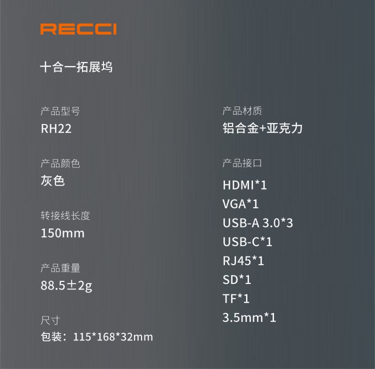 商品名称:RECCI锐思RH22十合一HUB数据线转接口Type-C TO