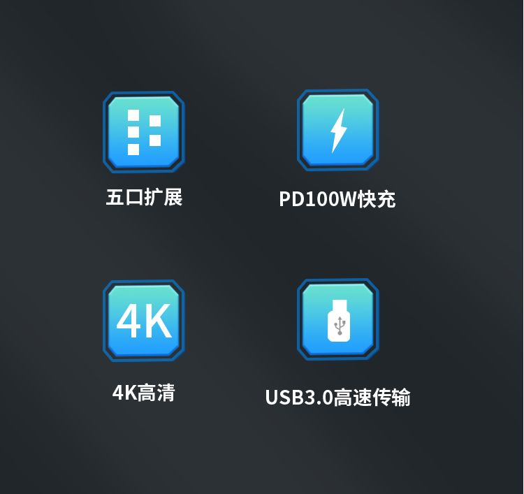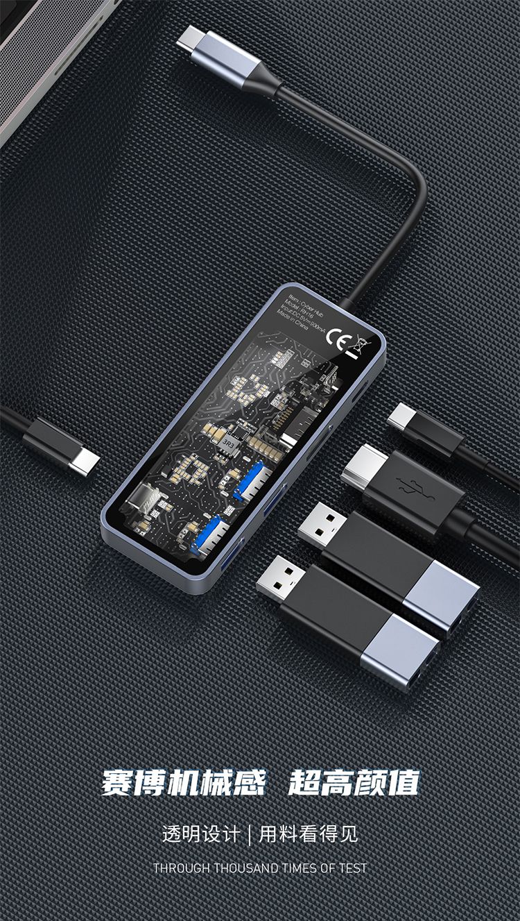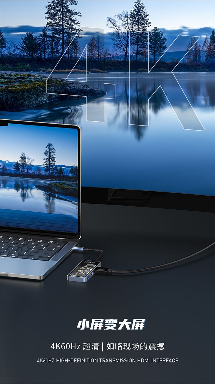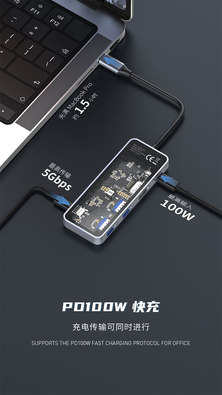 商品名称:RECCI锐思RH16数据线支持PD100W充电线转HDM五合一HUB