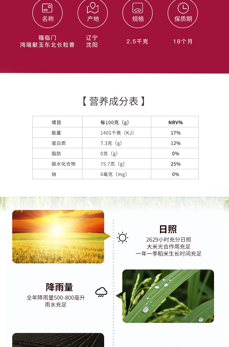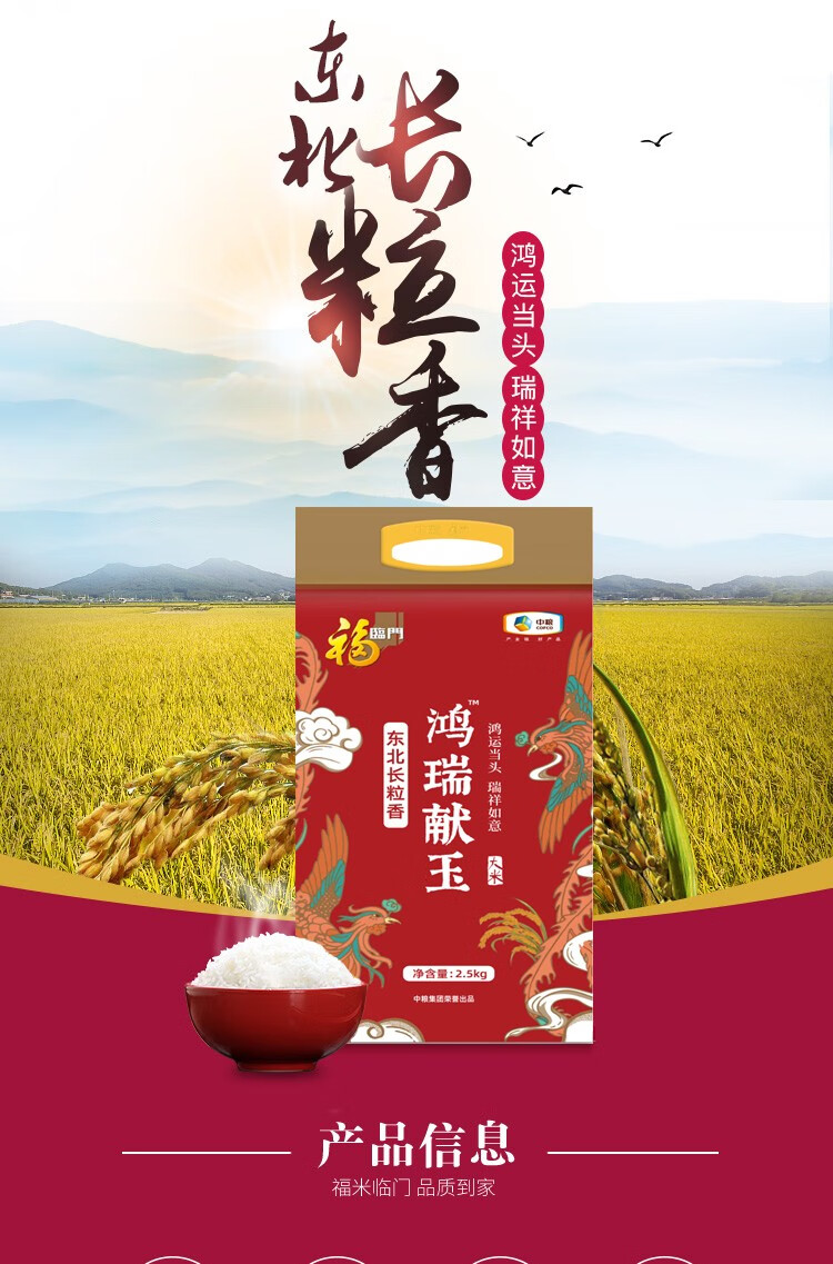 商品名称:中粮福临门鸿瑞献玉东北长粒香大米2.5kg
