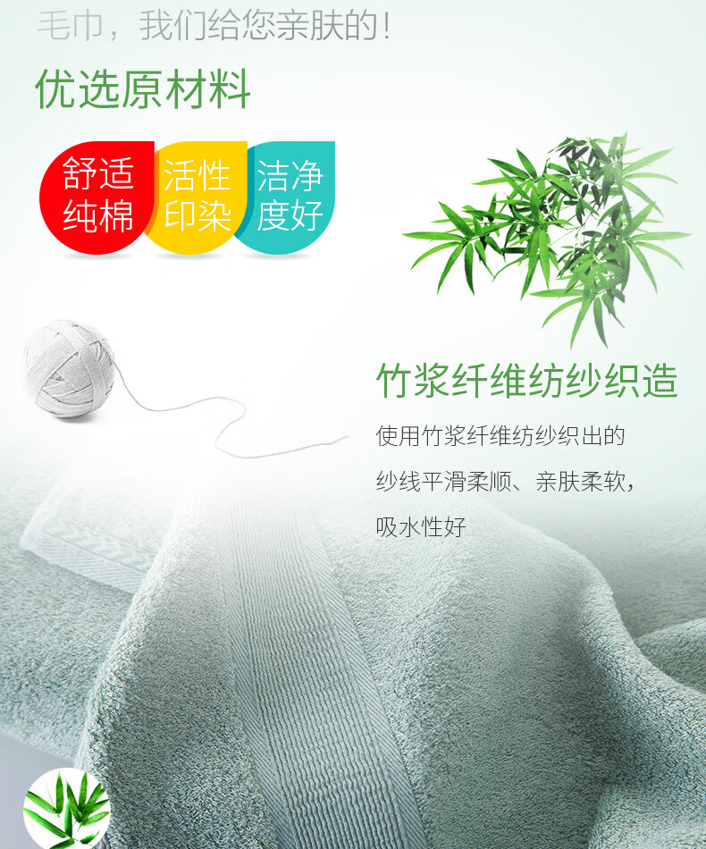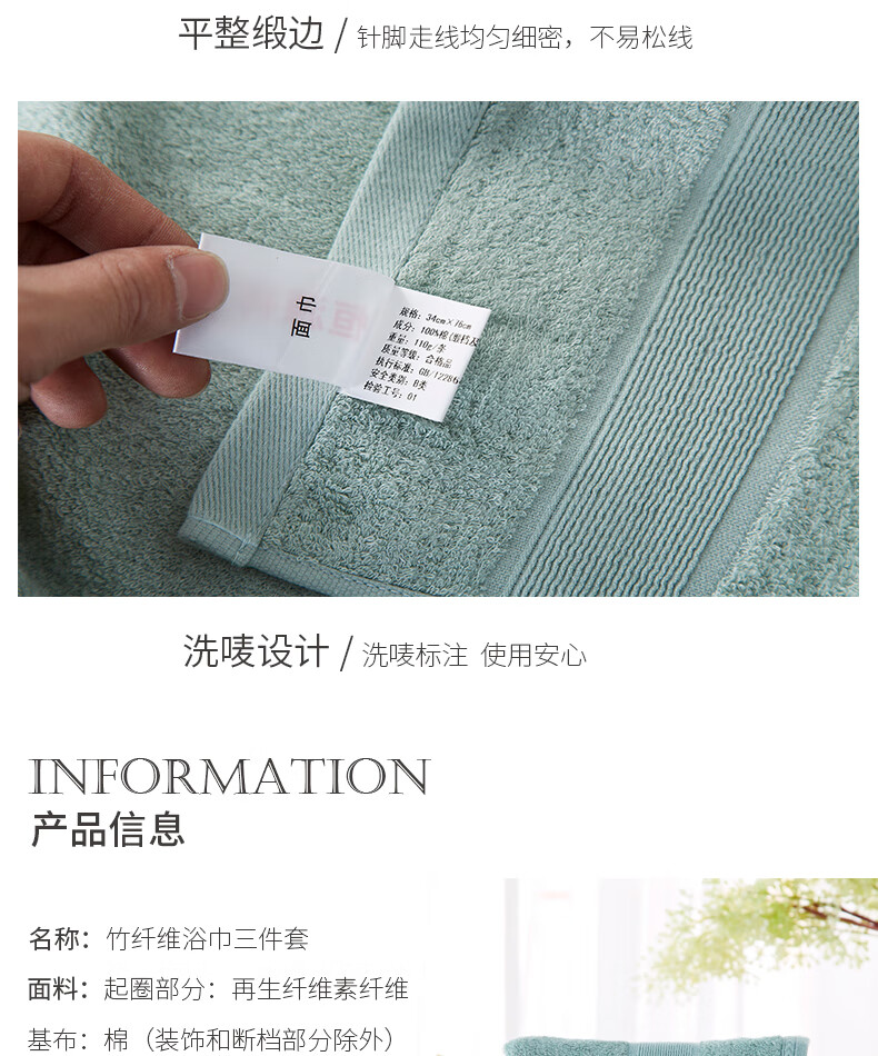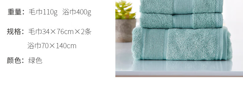 商品名称:恒源祥竹纤维纺纱毛巾浴巾三件套-绿色