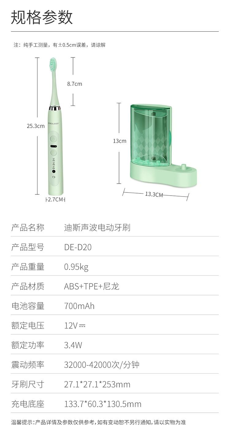 商品名称:DESLEEP/迪斯声波电动牙刷DE-D20