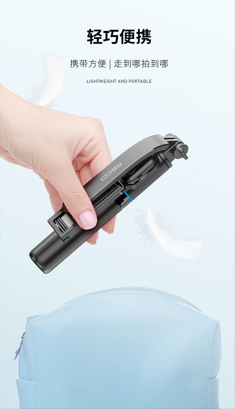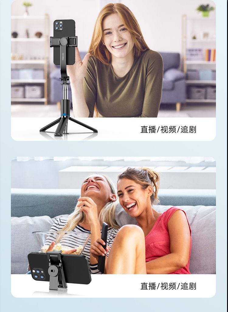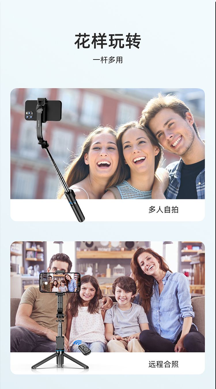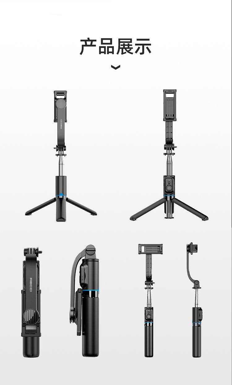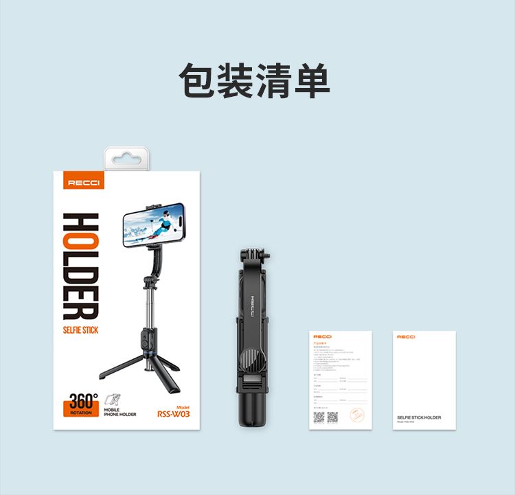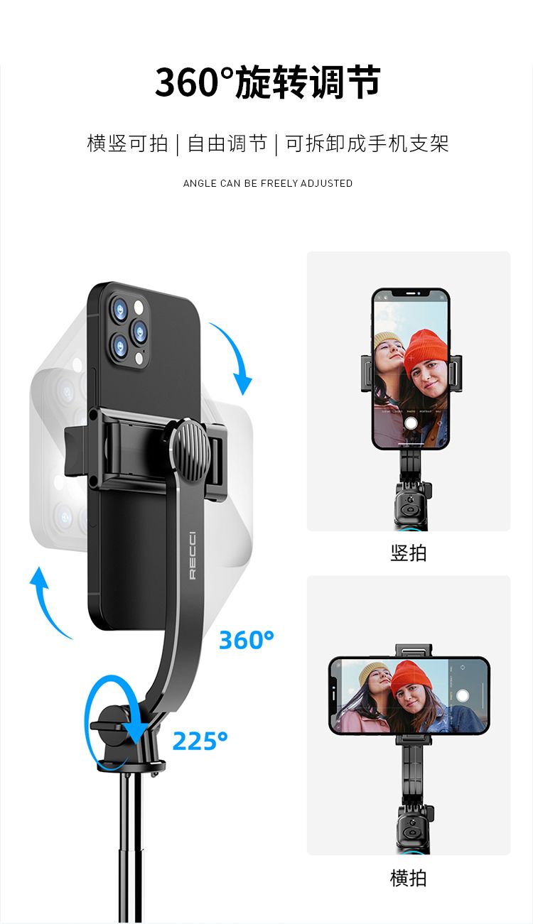 商品名称:RECCI锐思RSS-W03蓝牙遥控拍照手机夹可360度旋转轻松切横屏自拍杆