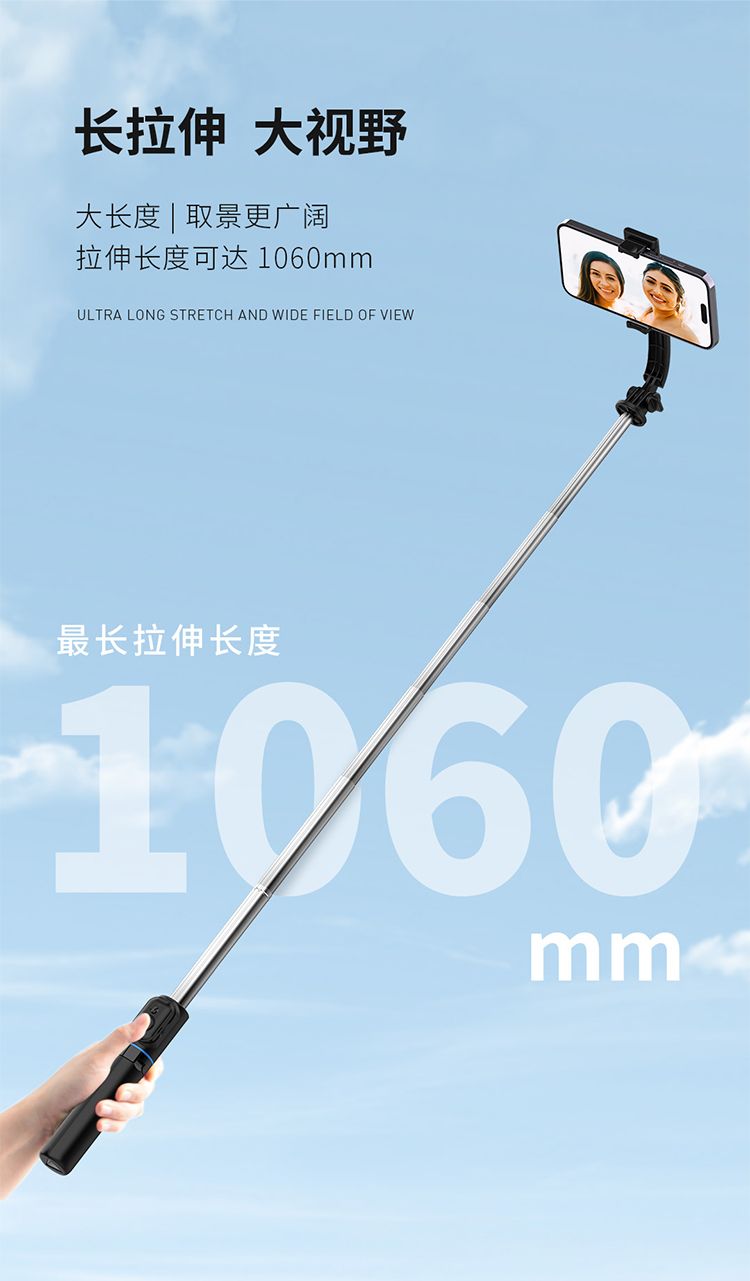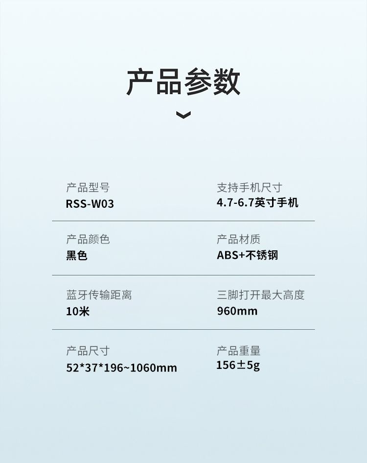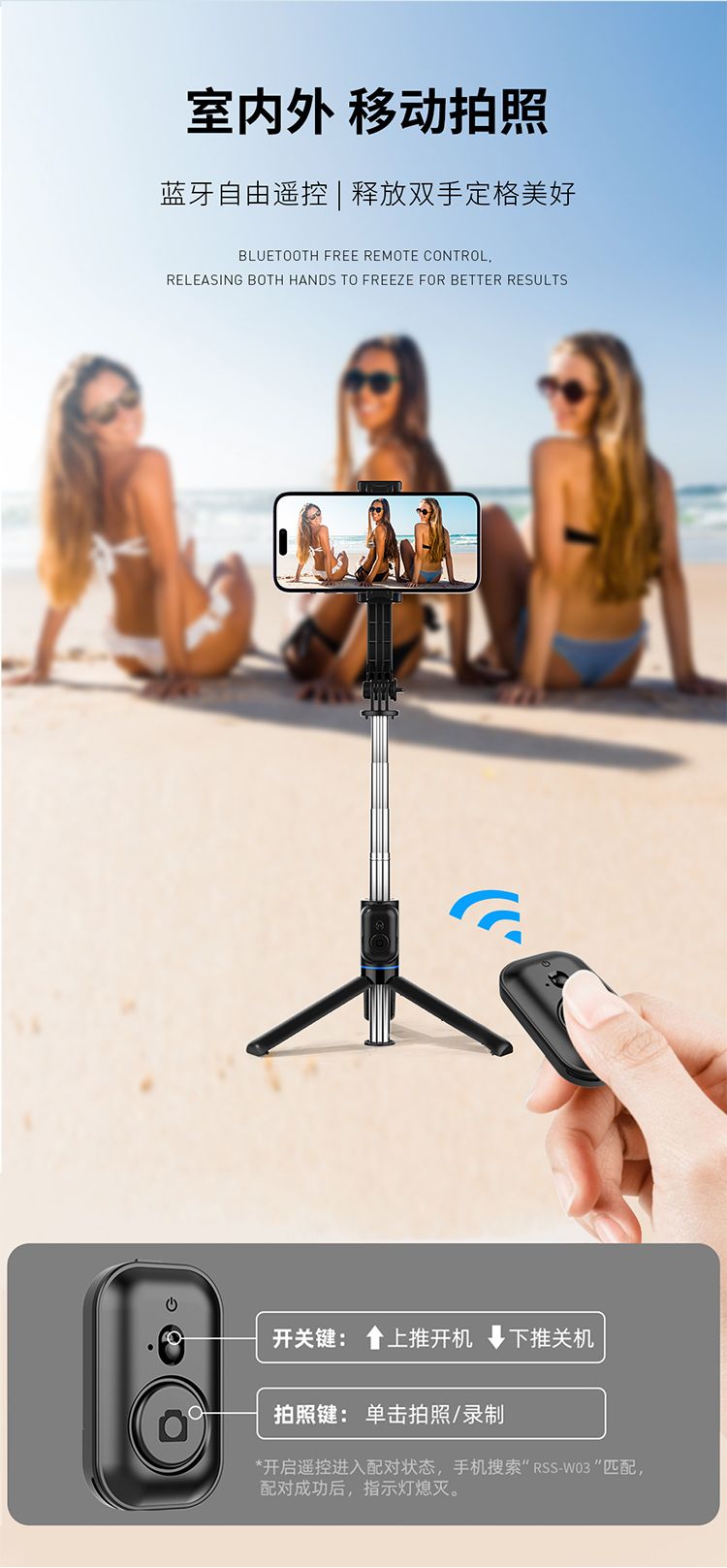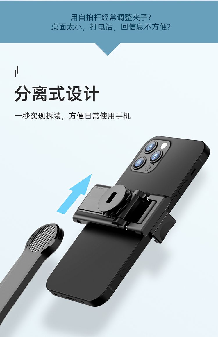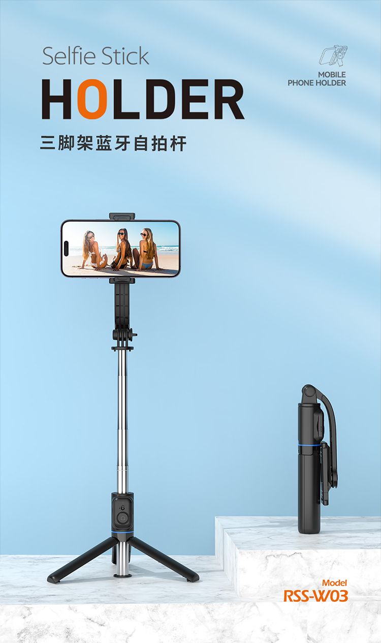 商品名称:RECCI锐思RSS-W03蓝牙遥控拍照手机夹可360度旋转轻松切横屏自拍杆