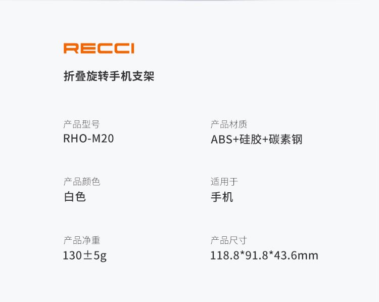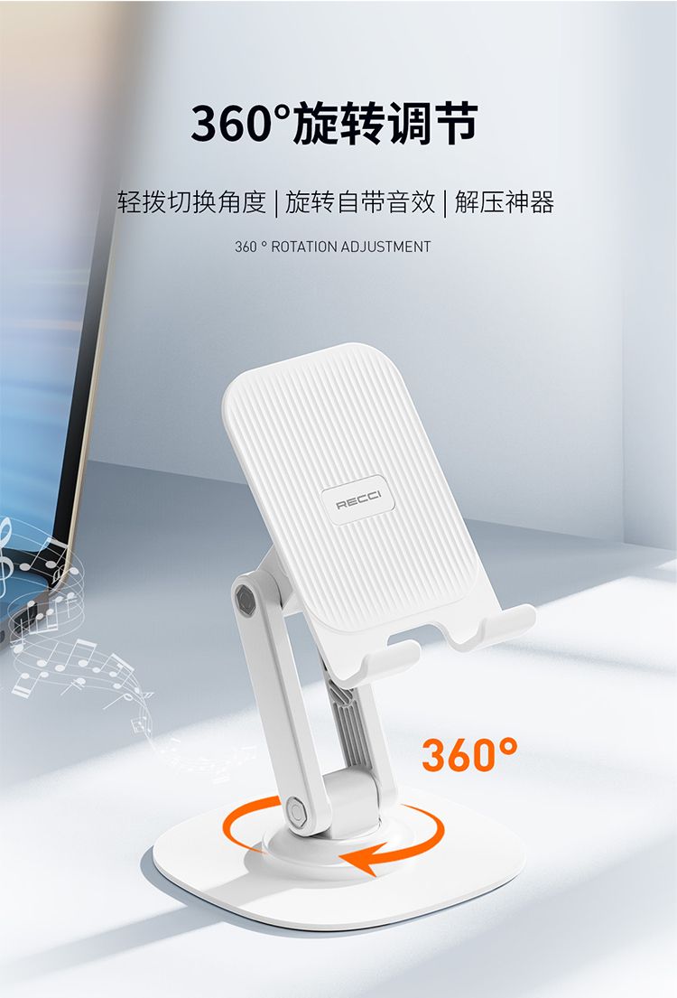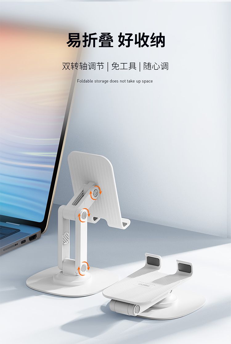 商品名称:RECCI锐思RHO-M20可升降加重金属底座稳固防倾倒可折叠收纳手机支架
