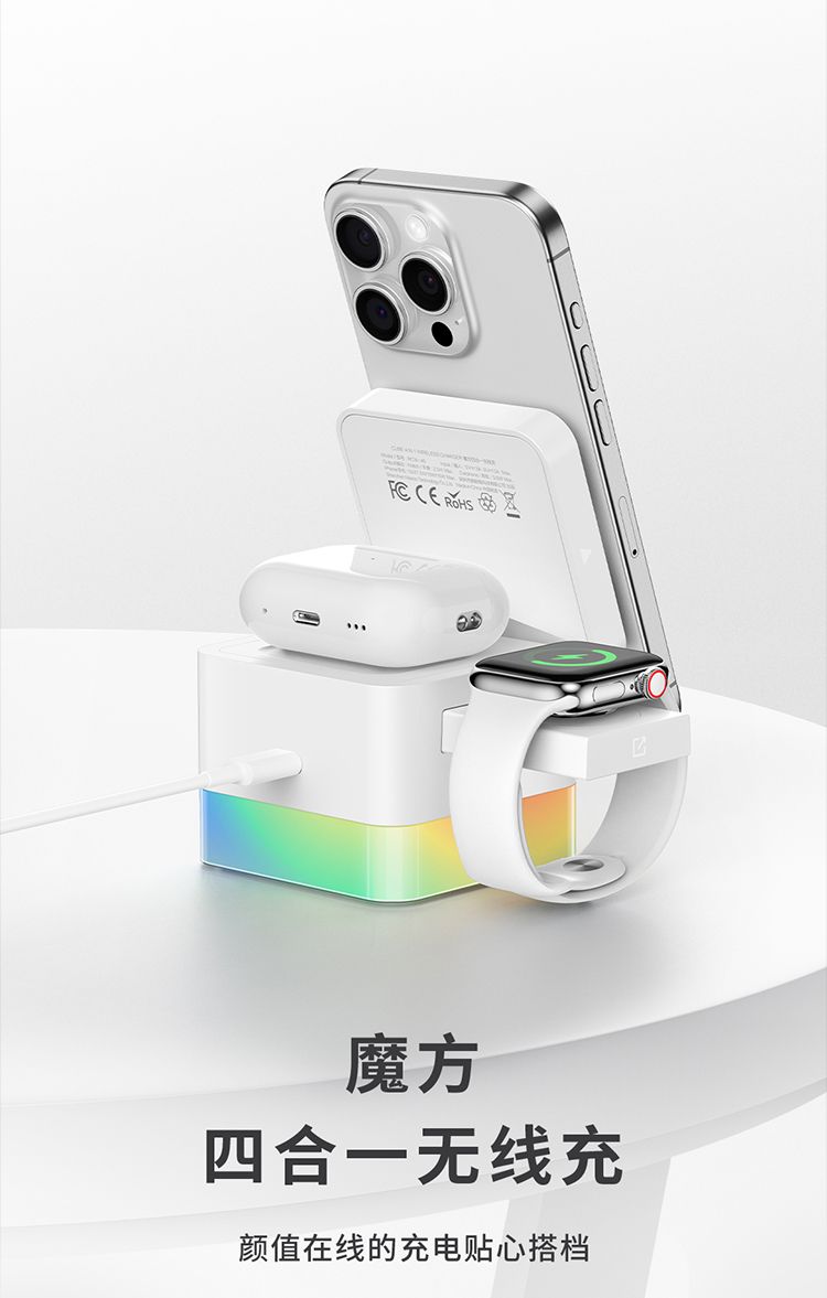 商品名称:RECCI锐思RCW-46无线充电器魔方四合一可同时充手机手表耳适用苹果安卓
