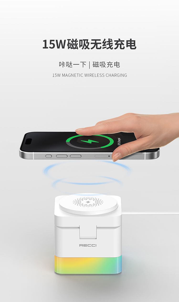 RECCI锐思RCW-46无线充电器魔方四合一可同时充手机手表耳适用苹果安卓