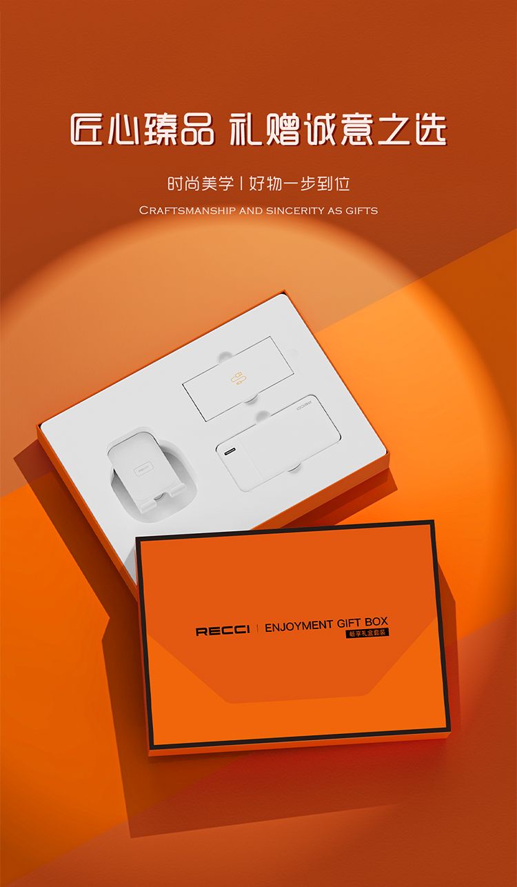 RECCI锐思 畅享RG01礼盒 移动电源一万毫安+一拖三数据线+折叠旋转手机支架