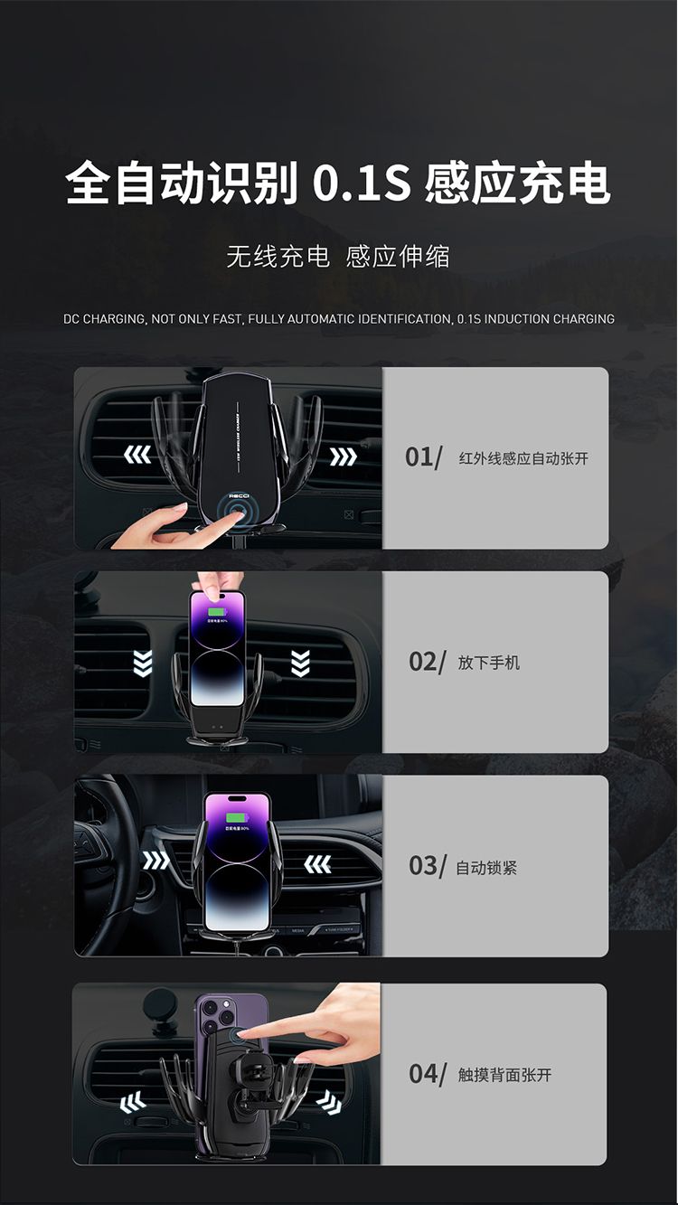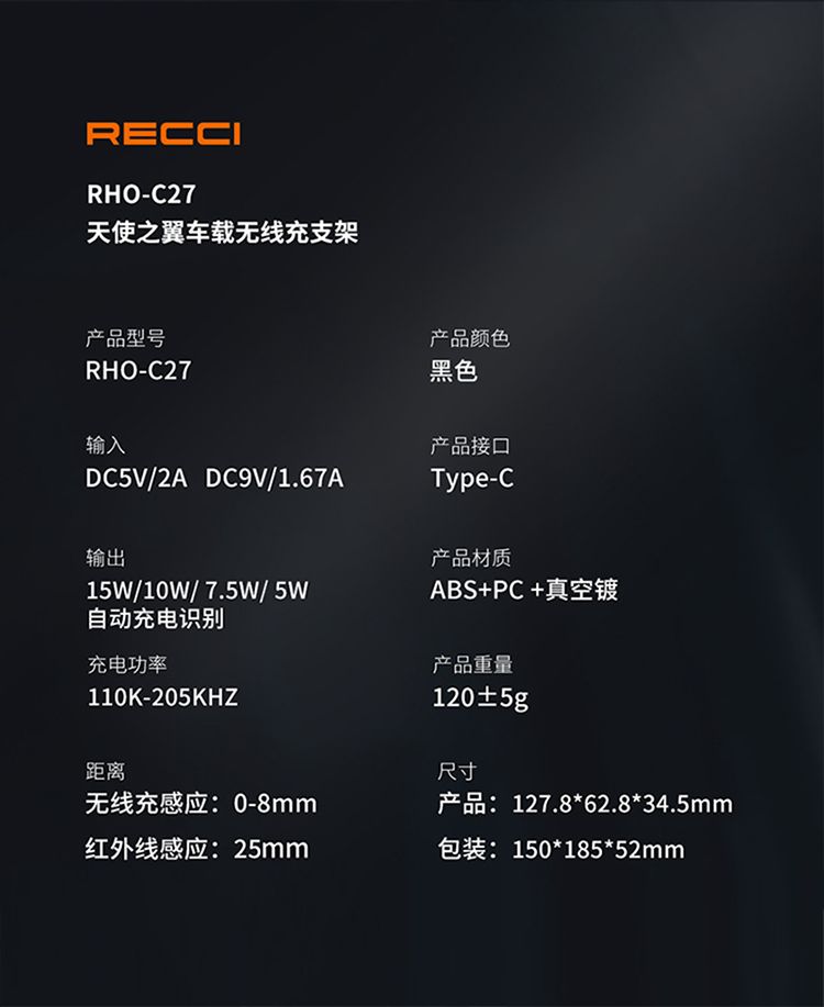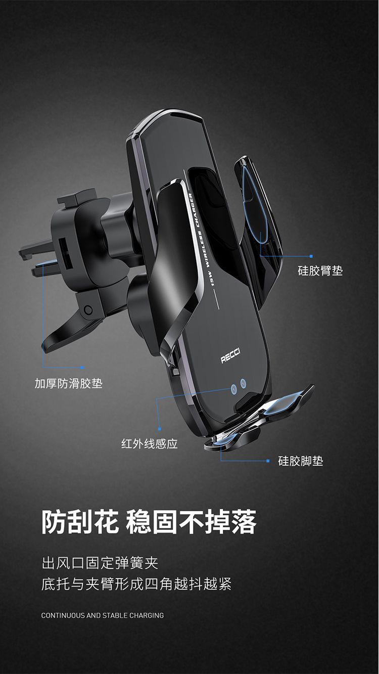商品名称:RECCI锐思RHO-C27车载手机支架磁吸充电感应伸缩红外线感应