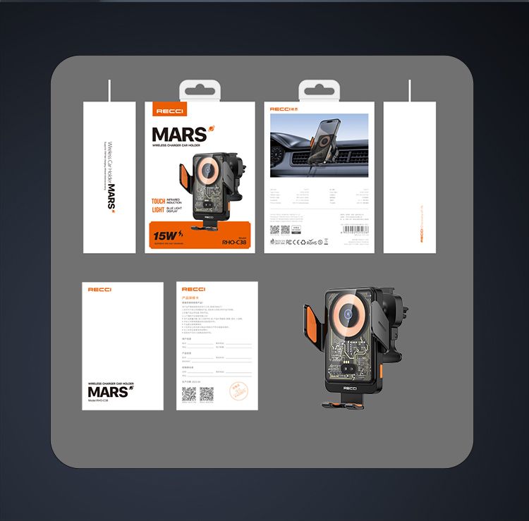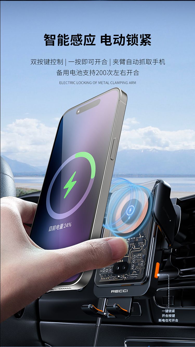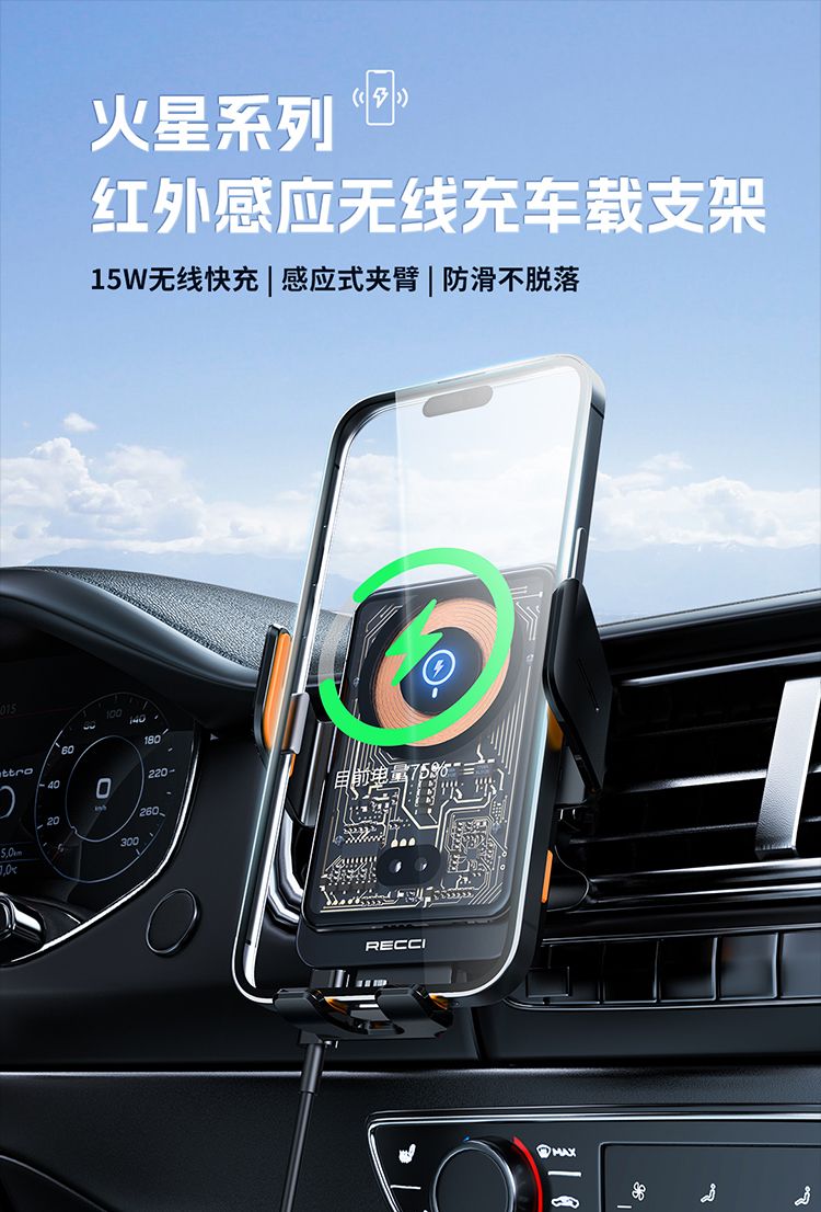 RECCI锐思RHO-C38火星系列(15W)机器左右双臂环抱行设计,兼容各款尺寸手机