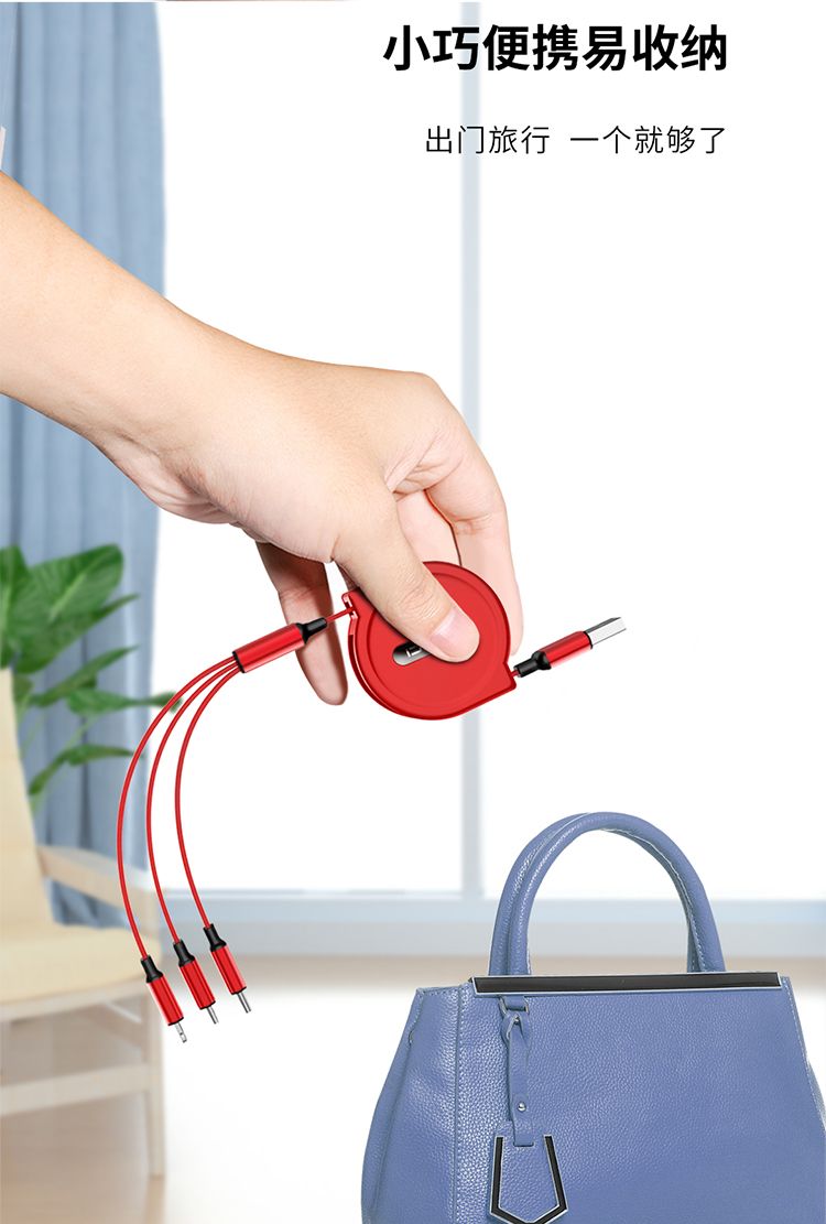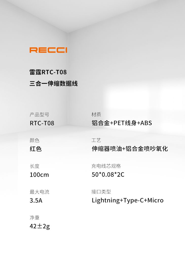 商品名称:RECCI锐思Recci雷霆RTC-T08伸缩一拖三充电线4档拉伸长短随心不缠绕支持苹果安卓华为手机 红色