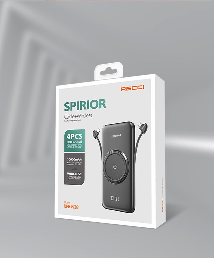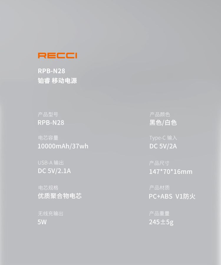 商品名称:RECCI锐思铂睿RPB-N28自带四根线无线充电大容量移动电源可上飞机便携苹果安卓通用