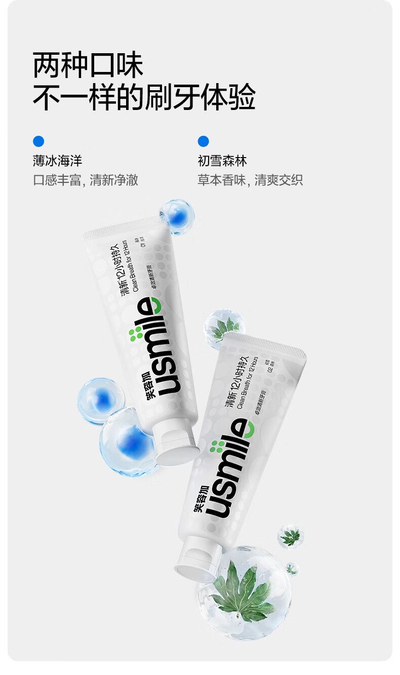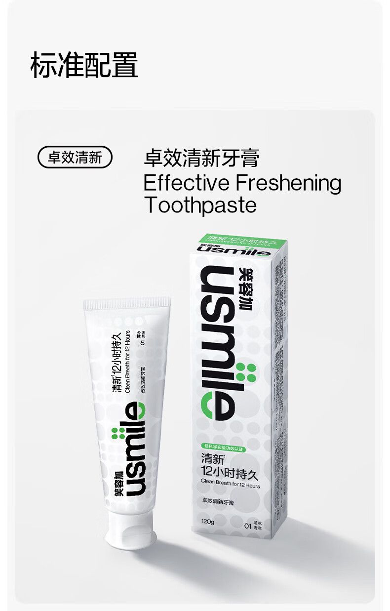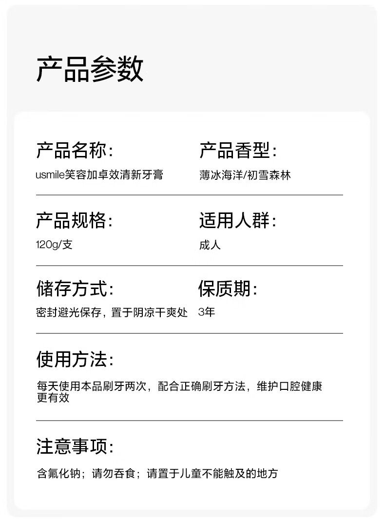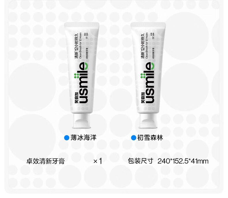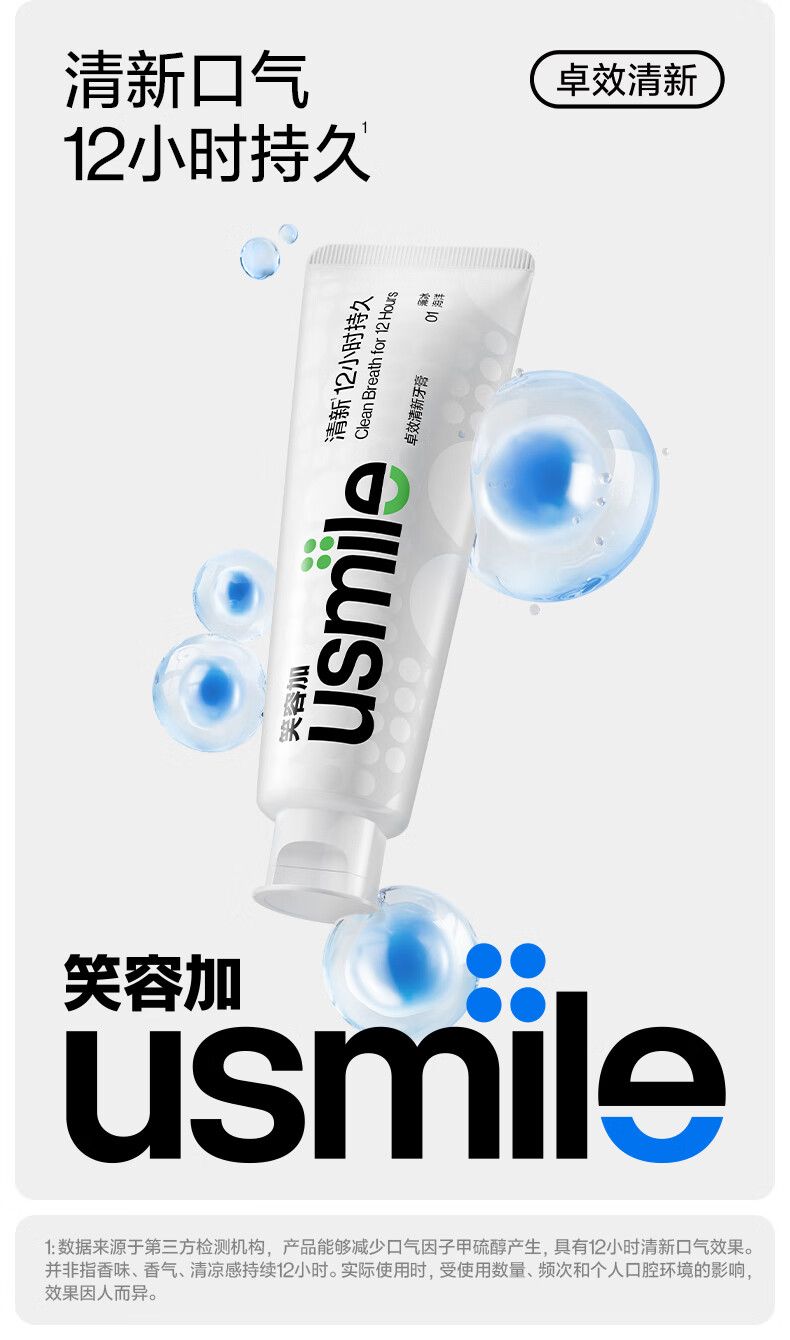 商品名称:usmile笑容加 卓效清新牙膏(薄冰海洋)120g单支装 清新口气