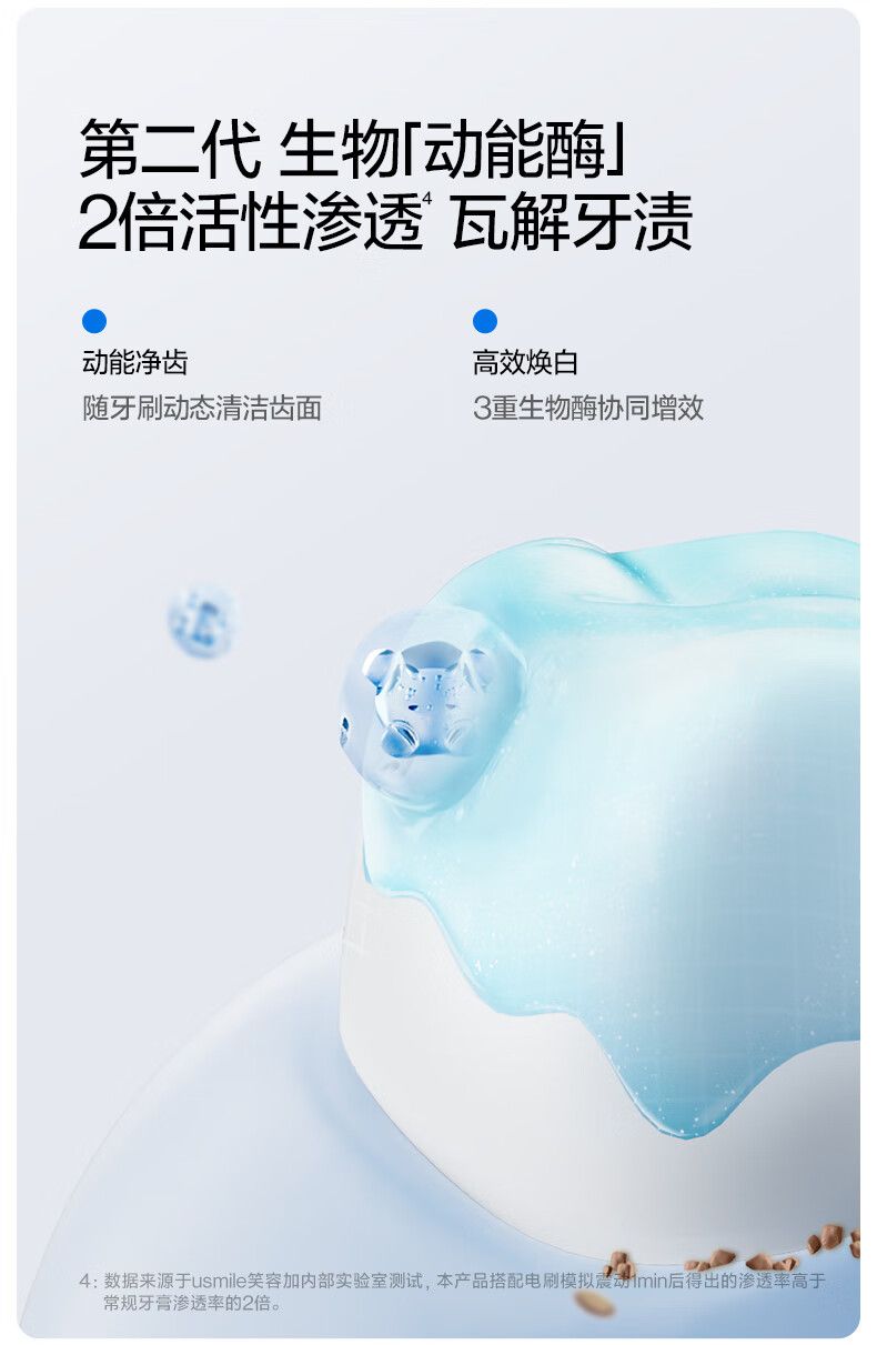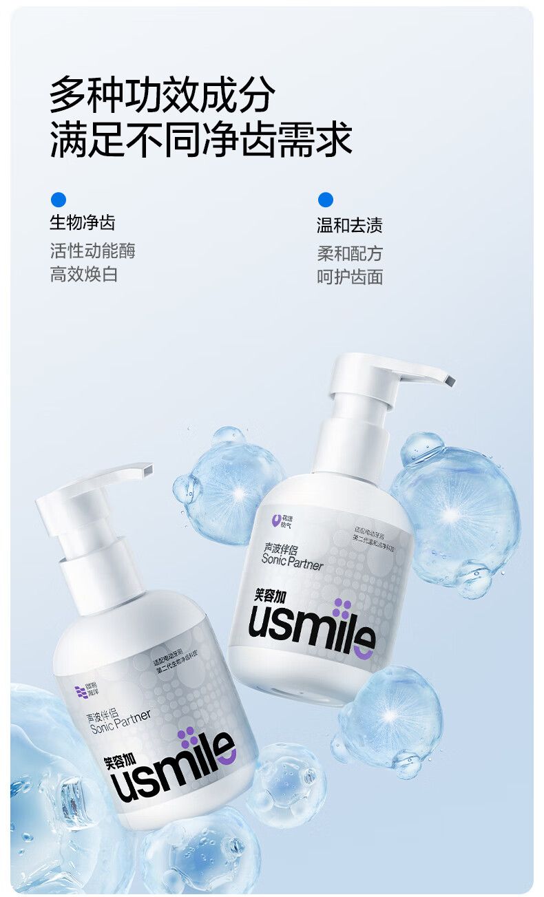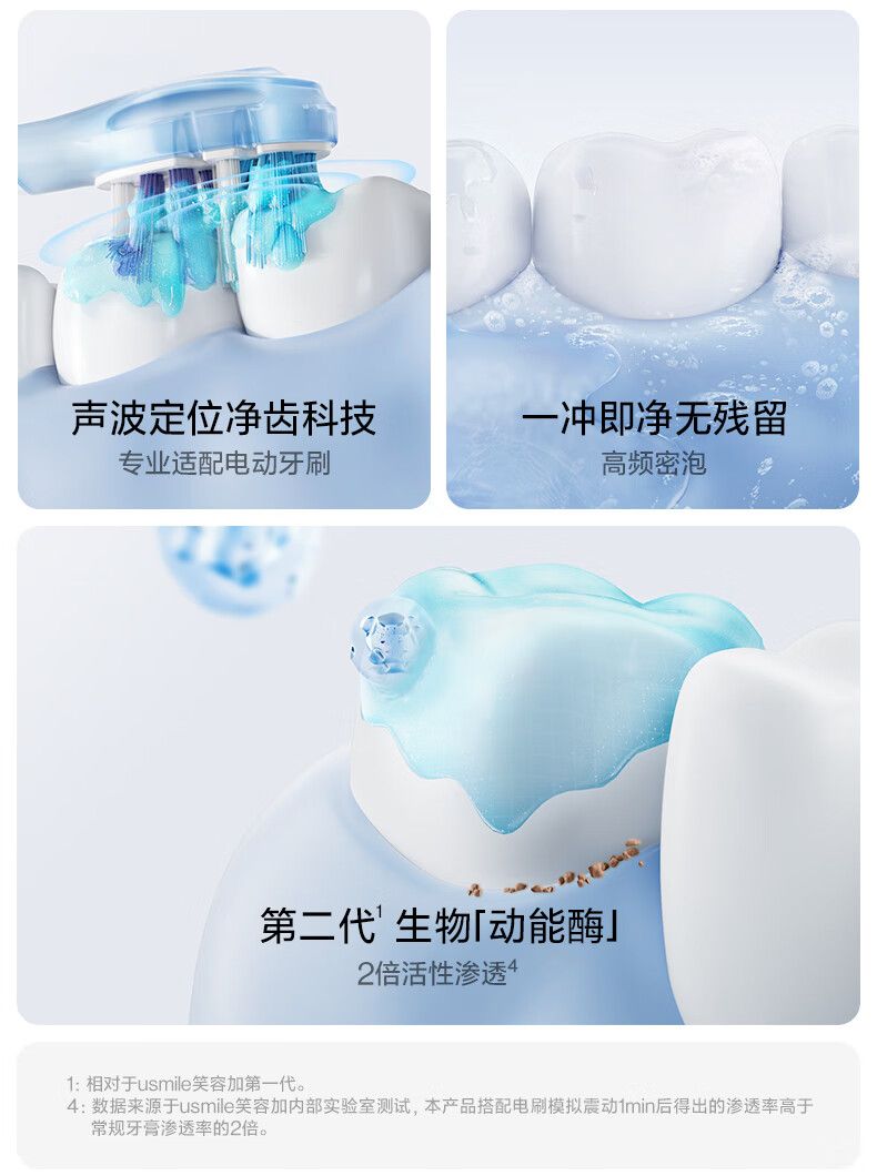 usmile笑容加 声波伴侣净齿声波牙膏(微冽海洋)170g 清新口气 清洁