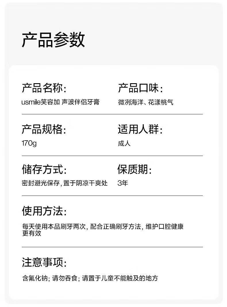 商品名称:usmile笑容加 声波伴侣净齿声波牙膏(微冽海洋)170g 清新口气 清洁