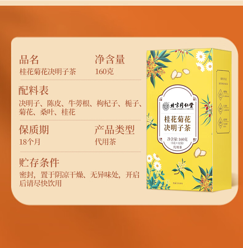 商品名称:北京同仁堂桂花菊花决明子茶160g