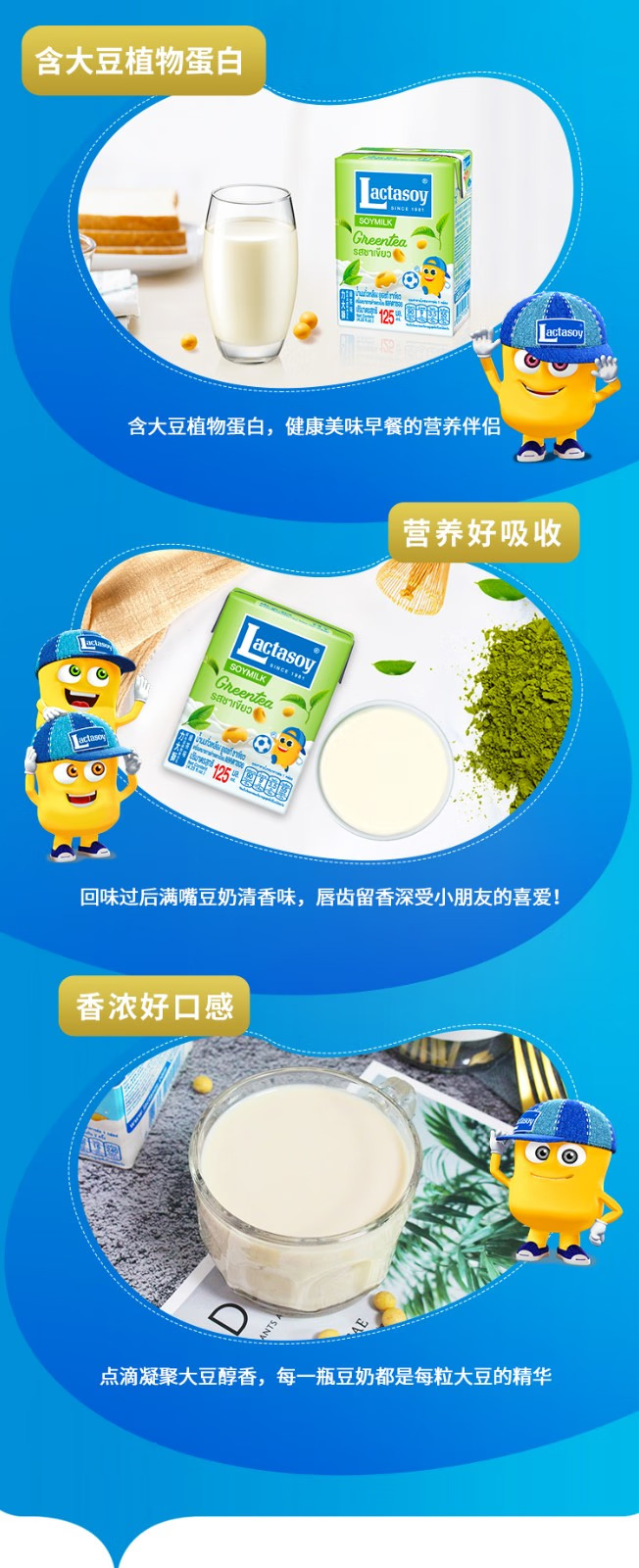 Lactasoy/力大狮泰国进口绿茶味豆奶125ml*6瓶*3组