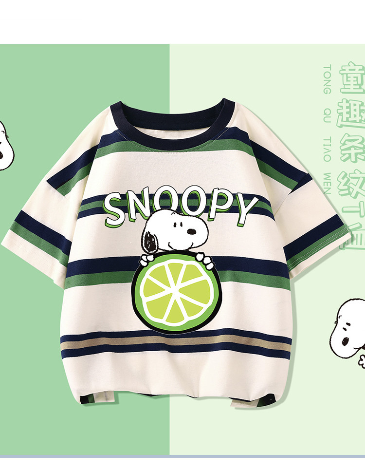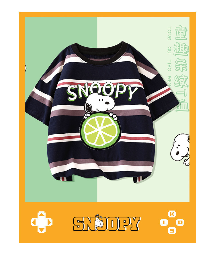商品名称:男童短袖2025夏季儿童时尚卡通条纹T恤舒适亲肤中大童装 402911