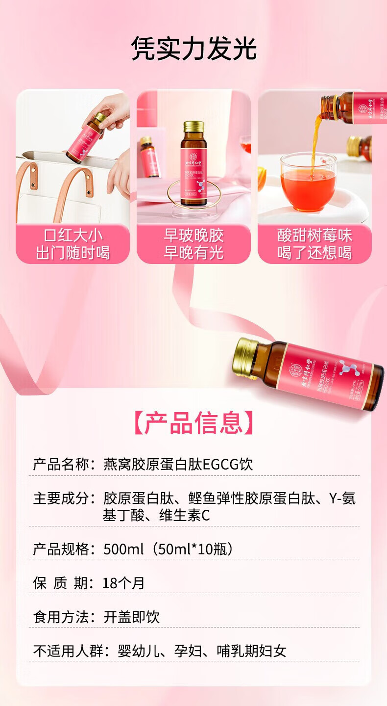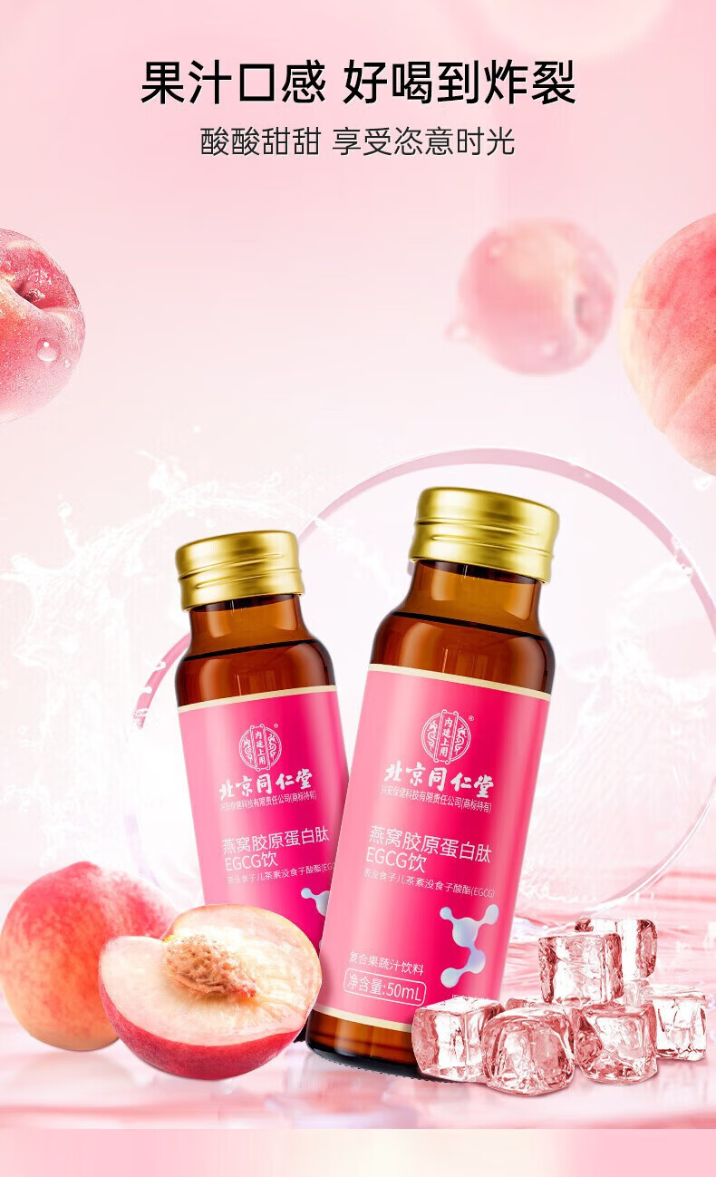 商品名称:北京同仁堂燕窝胶原蛋白肽EGCG饮品50ml*10瓶