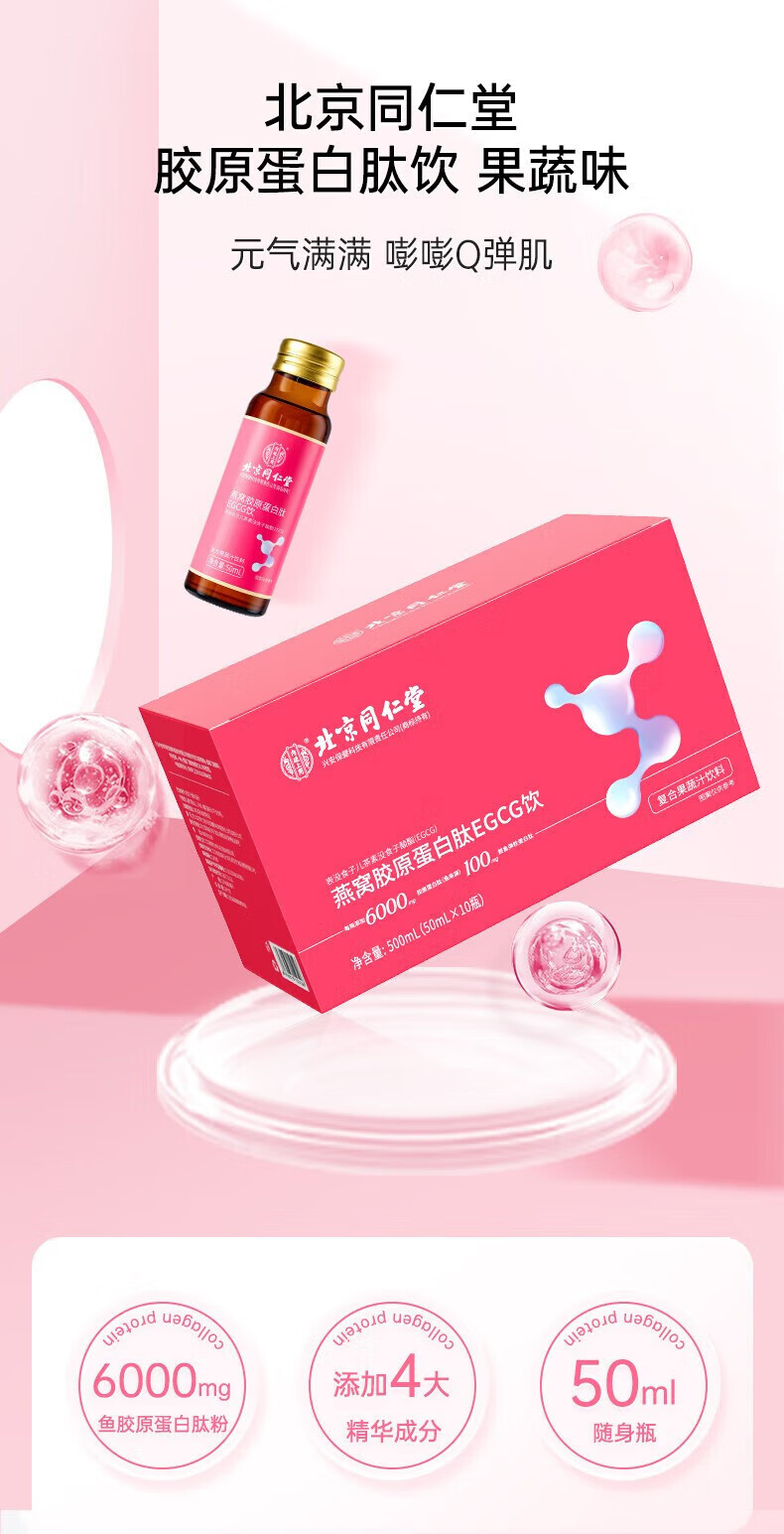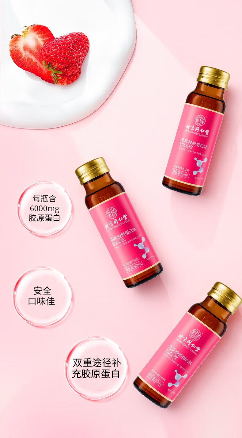北京同仁堂燕窝胶原蛋白肽EGCG饮品50ml*10瓶
