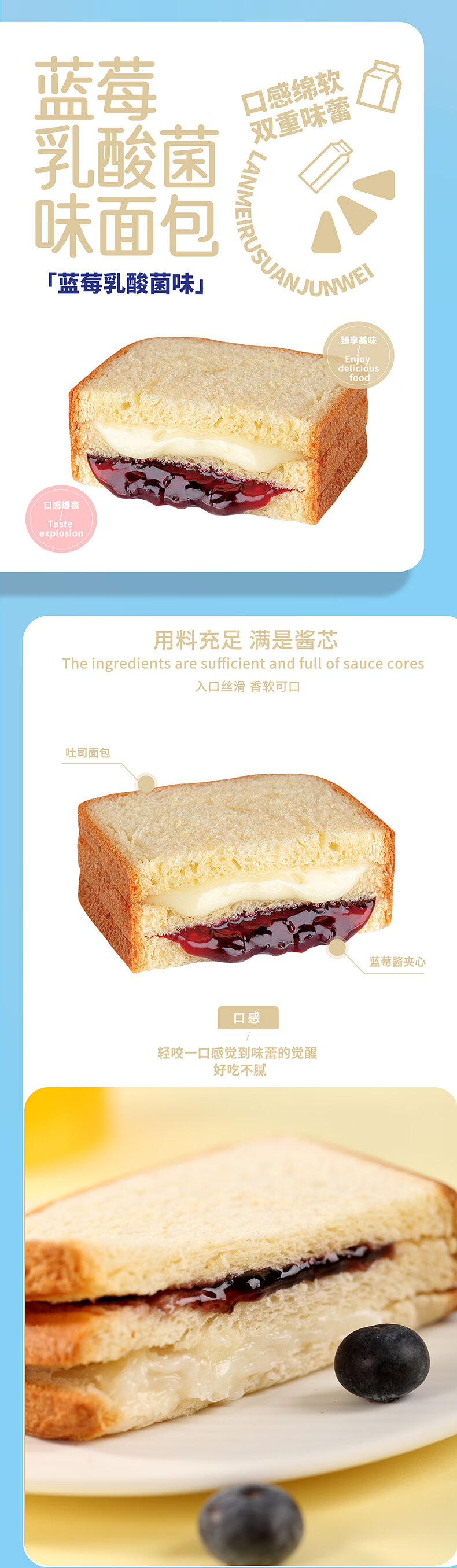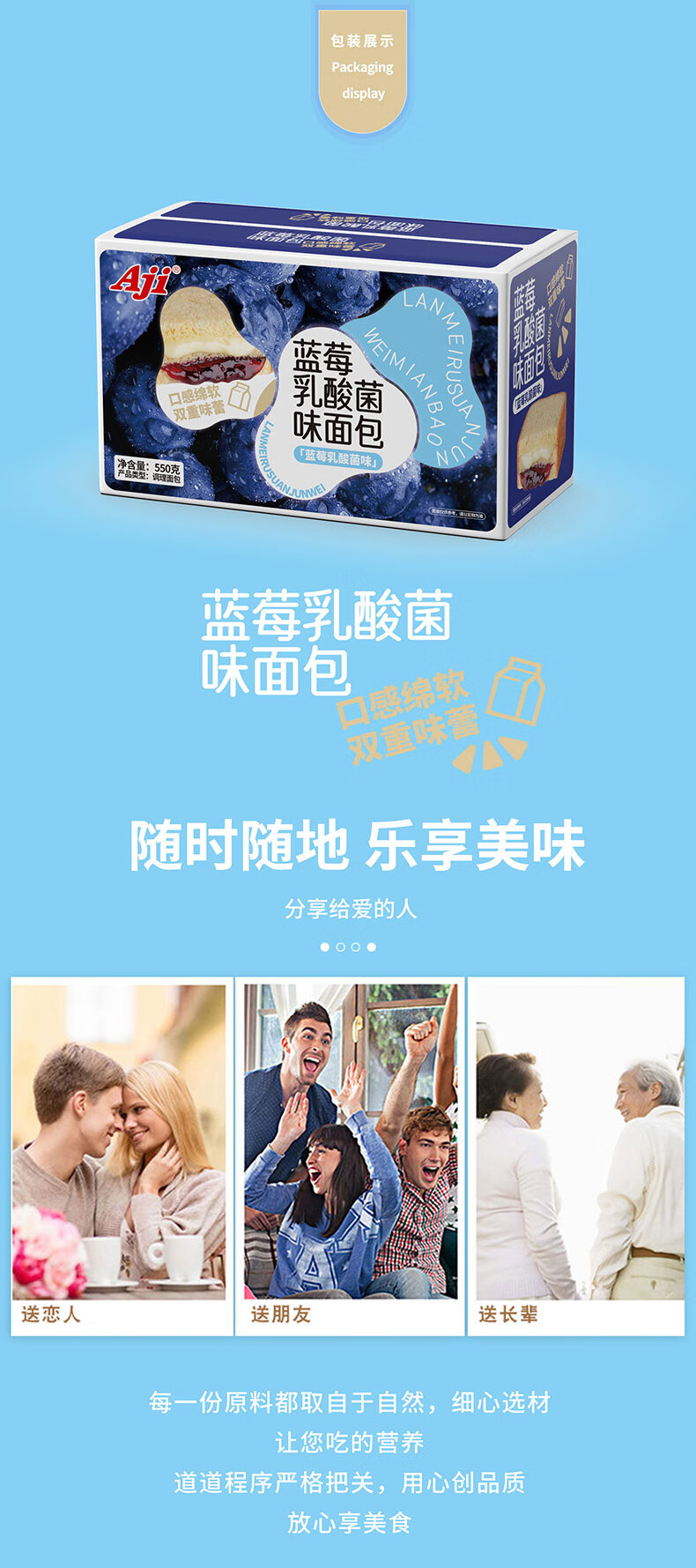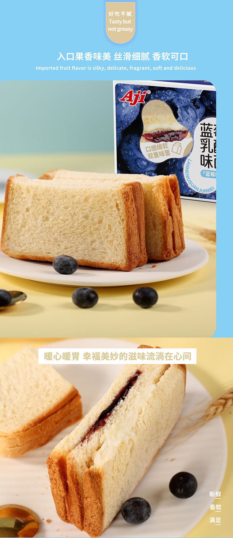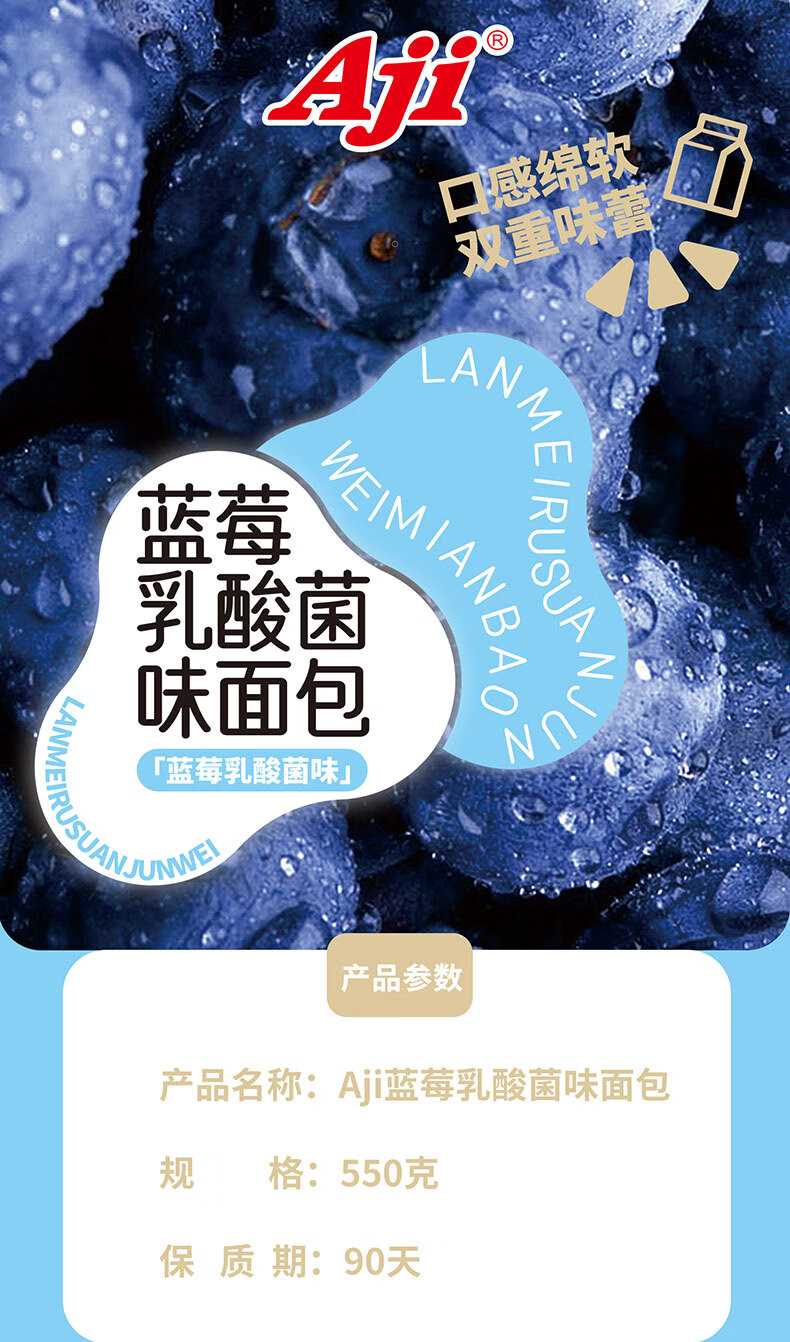 商品名称:Aji蓝莓乳酸菌味夹心面包550g*2箱