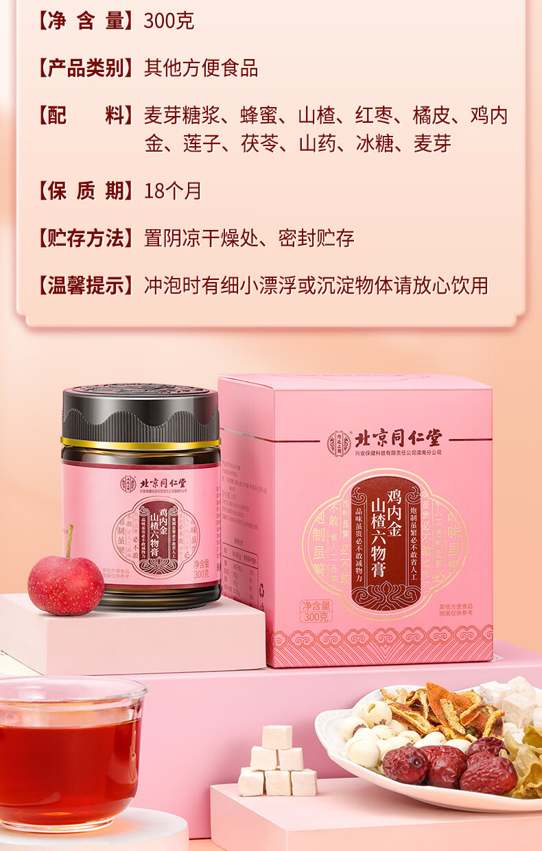 商品名称:北京同仁堂鸡内金山楂六物膏300g