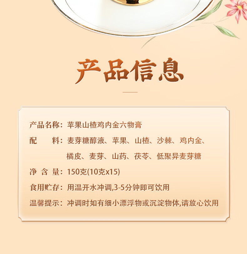商品名称:北京同仁堂苹果山楂鸡内金六物膏150g