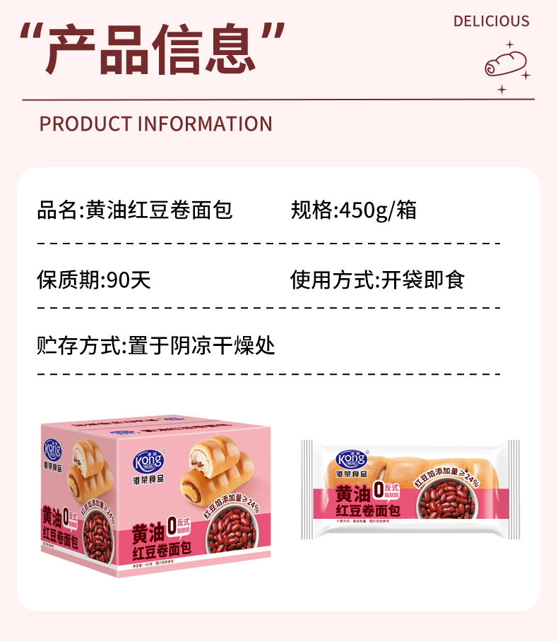 商品名称:KONG WENG/港荣黄油红豆卷面包整箱450g