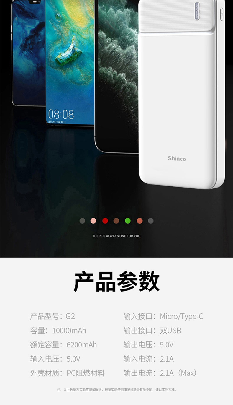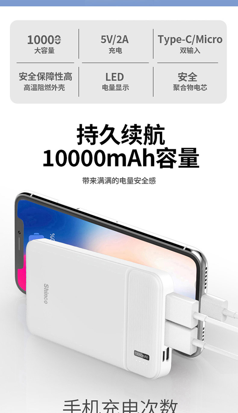 商品名称:Shinco/新科10000mAh快充移动电源G2