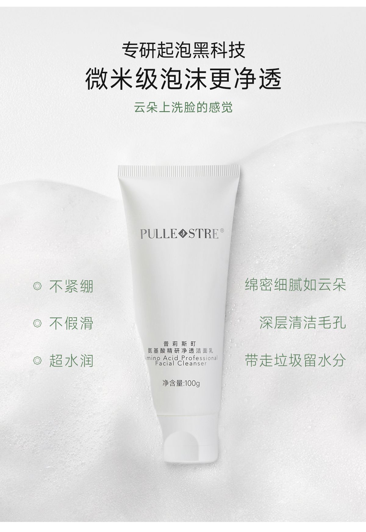 PULLE STRE/普莉斯町 氨基酸精研净透洁面乳100g/支