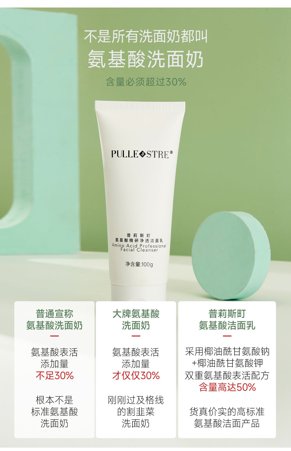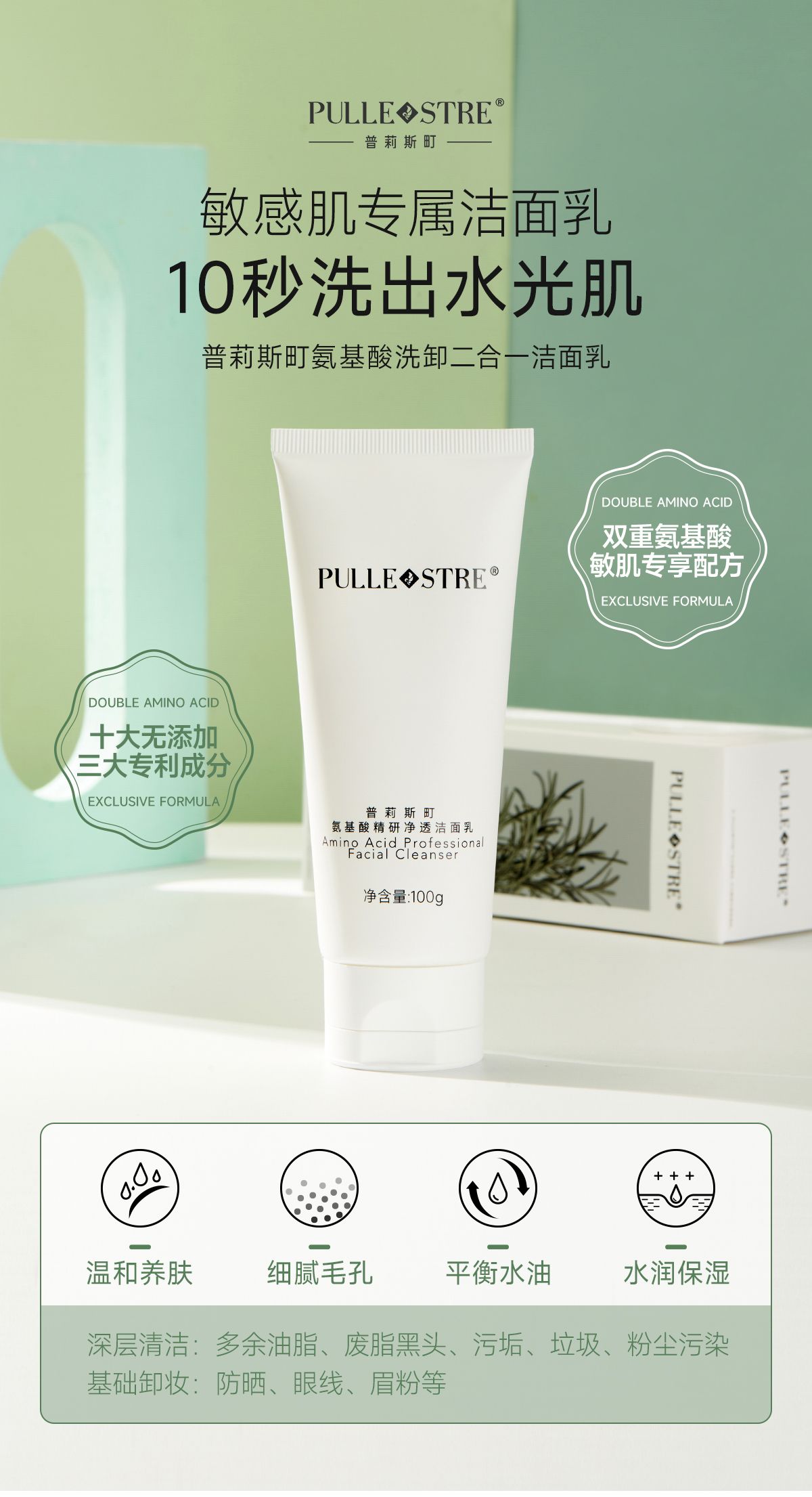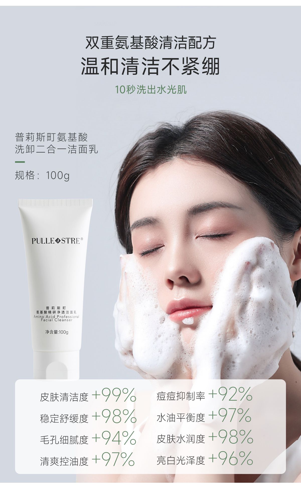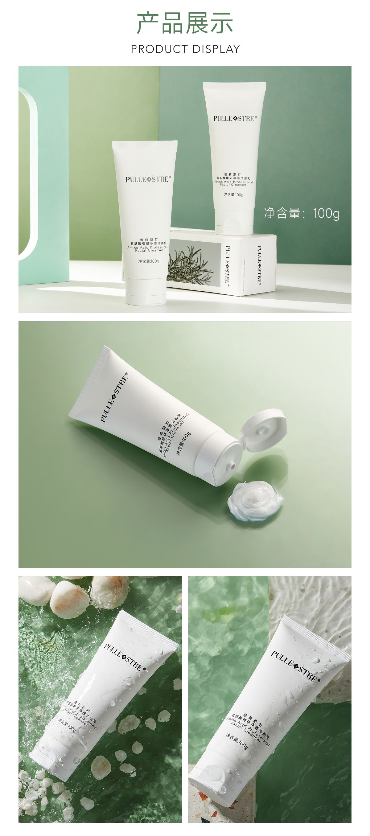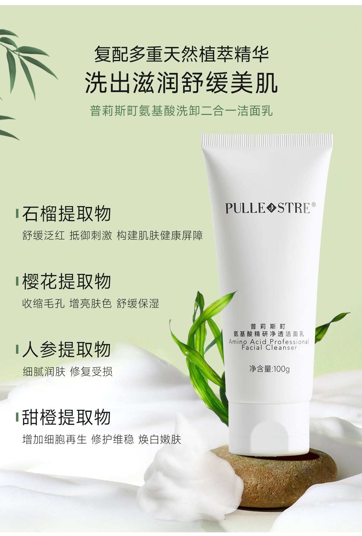商品名称:PULLE STRE/普莉斯町 氨基酸精研净透洁面乳100g/支