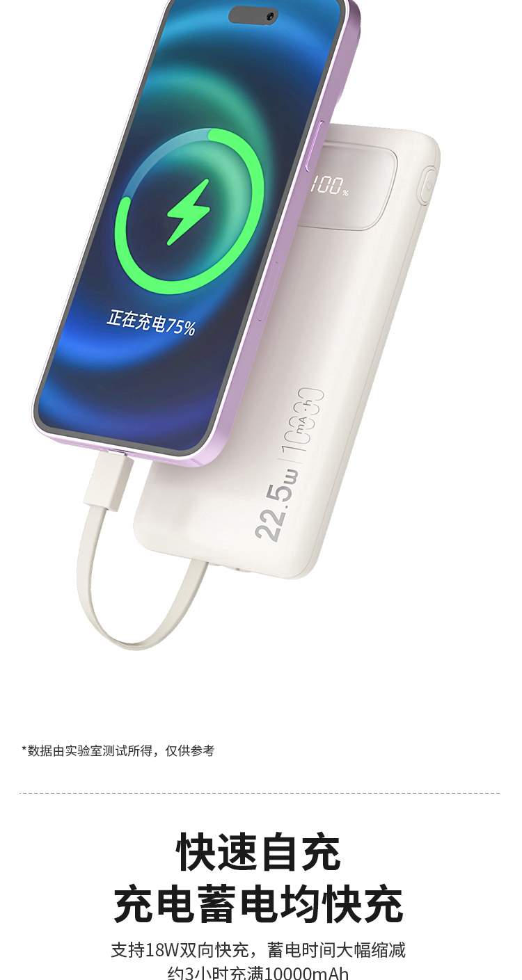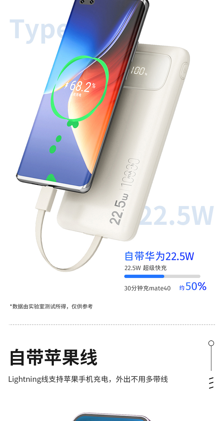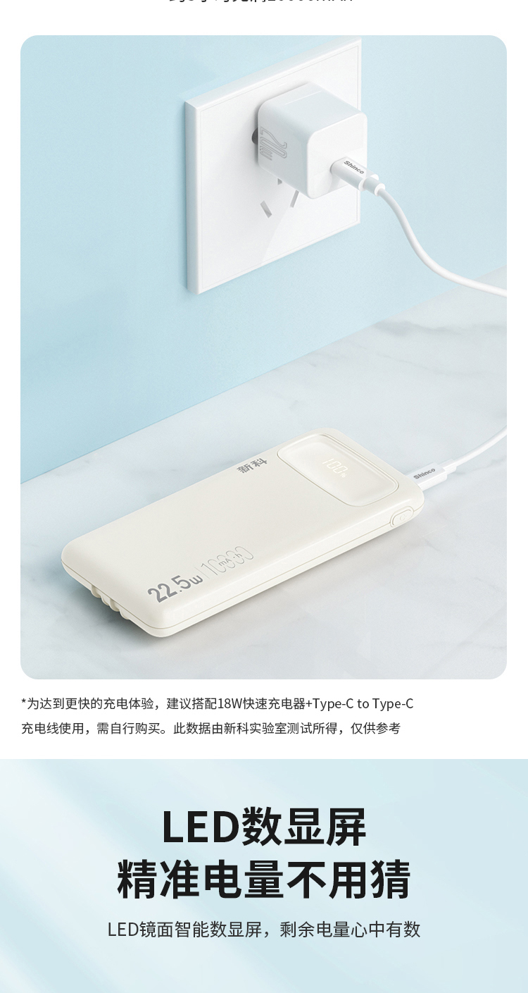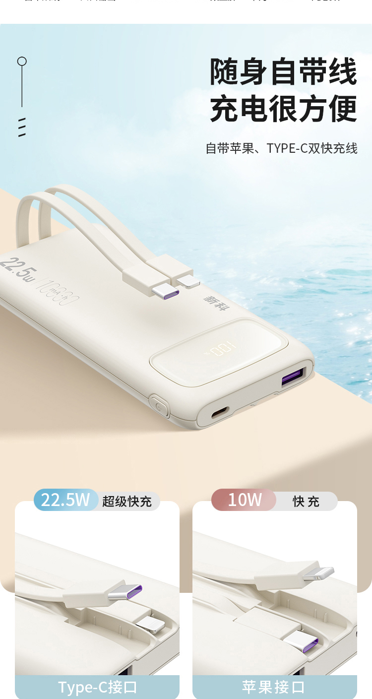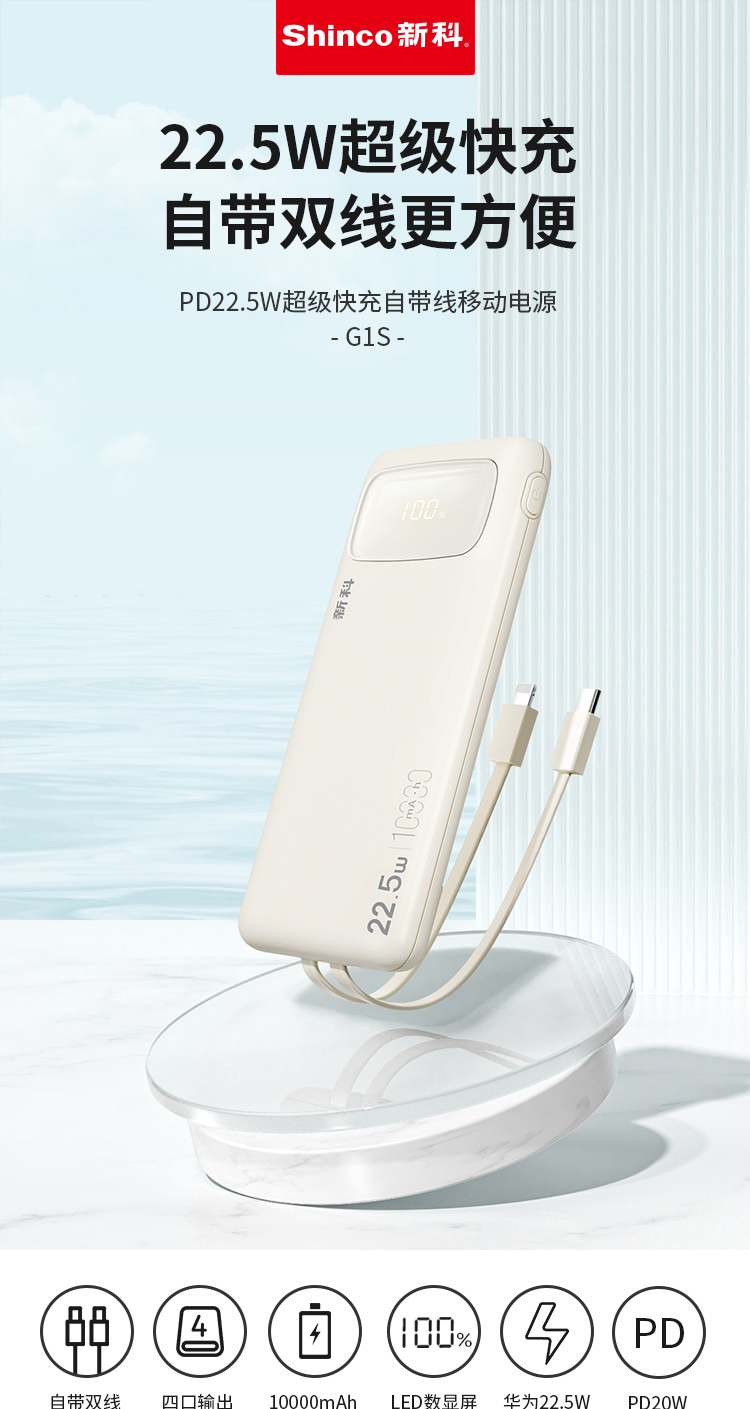商品名称:Shinco/新科10000mAh 22.5W超级快充自带线移动电源G1S