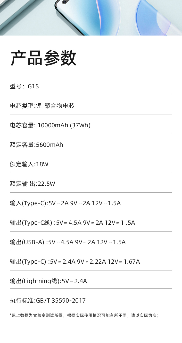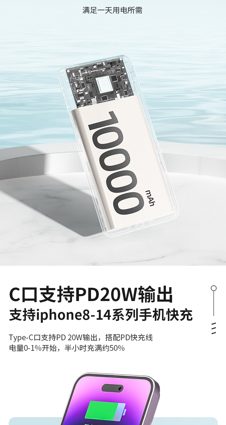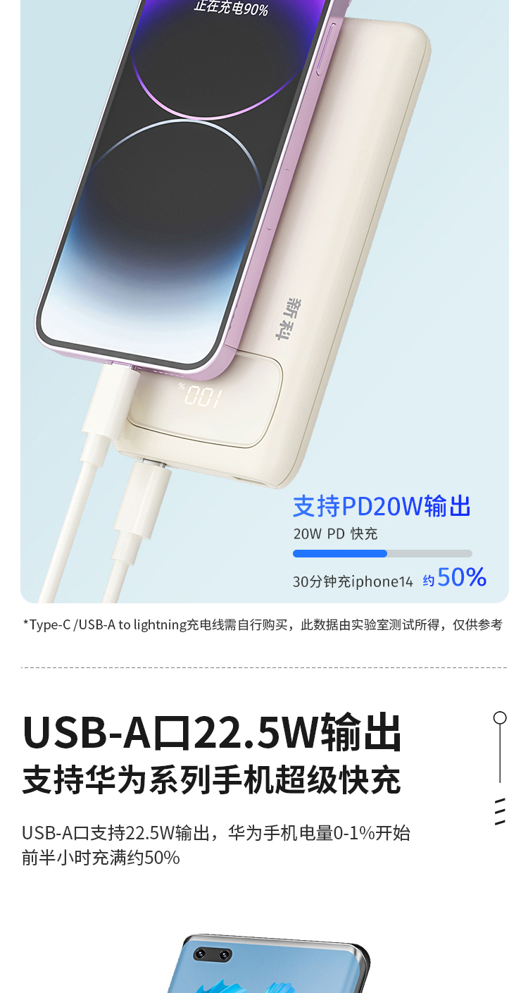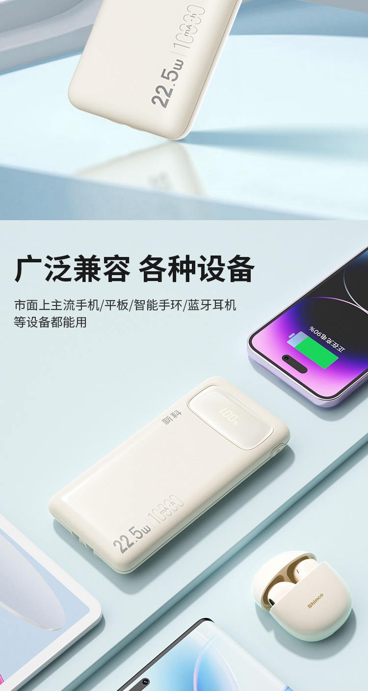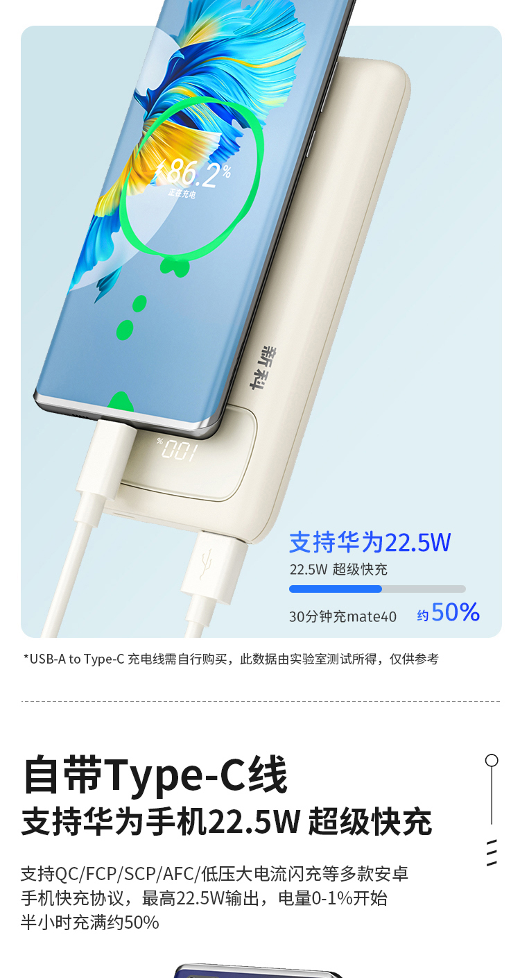 商品名称:Shinco/新科10000mAh 22.5W超级快充自带线移动电源G1S