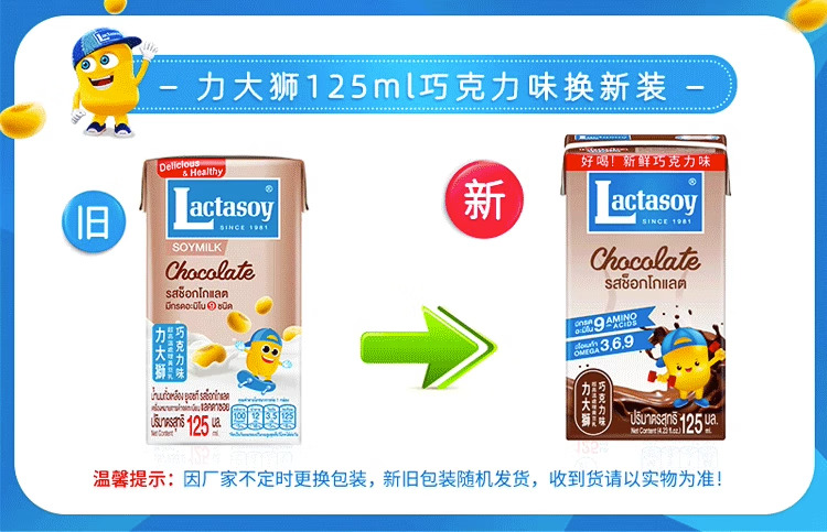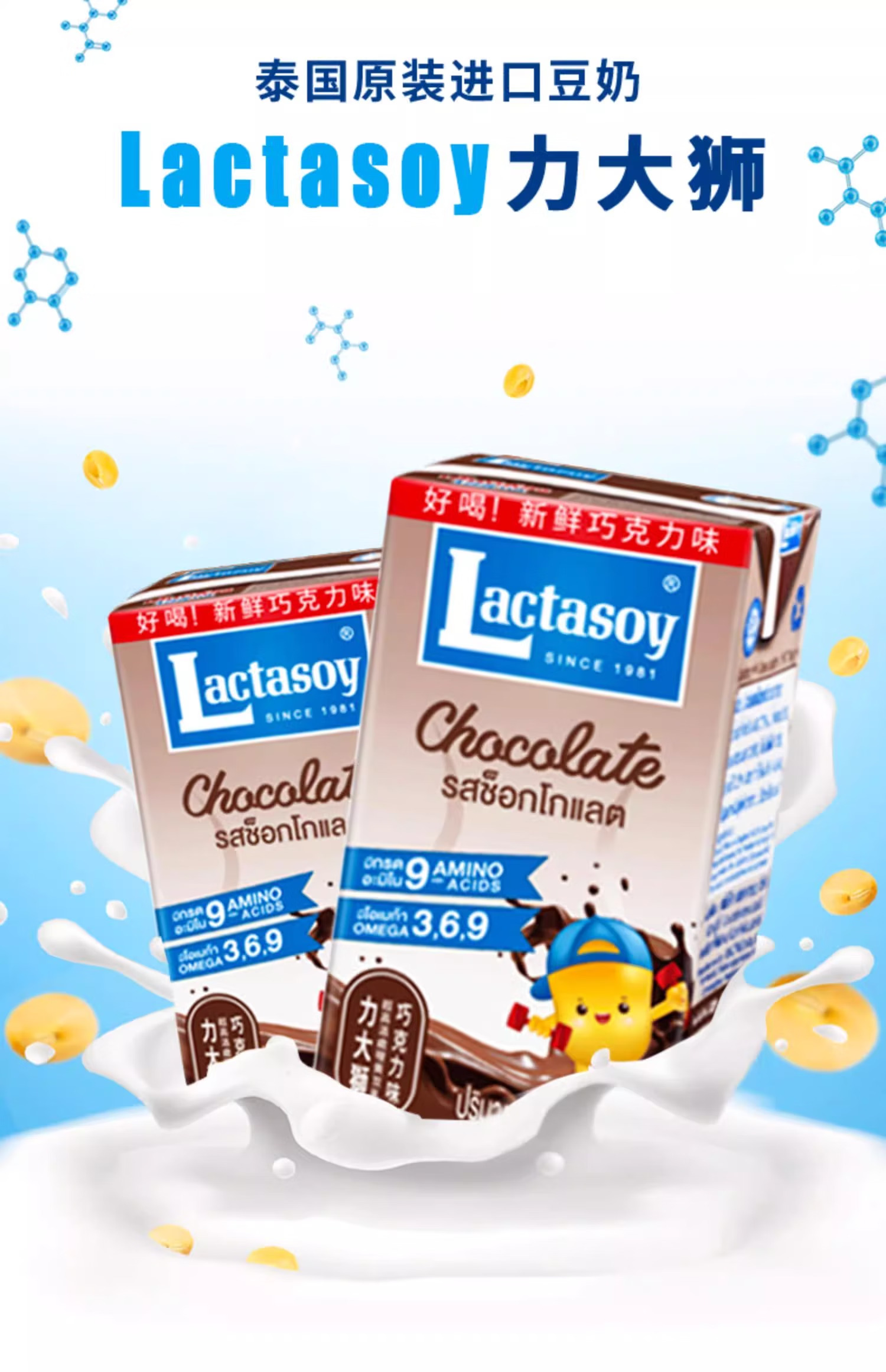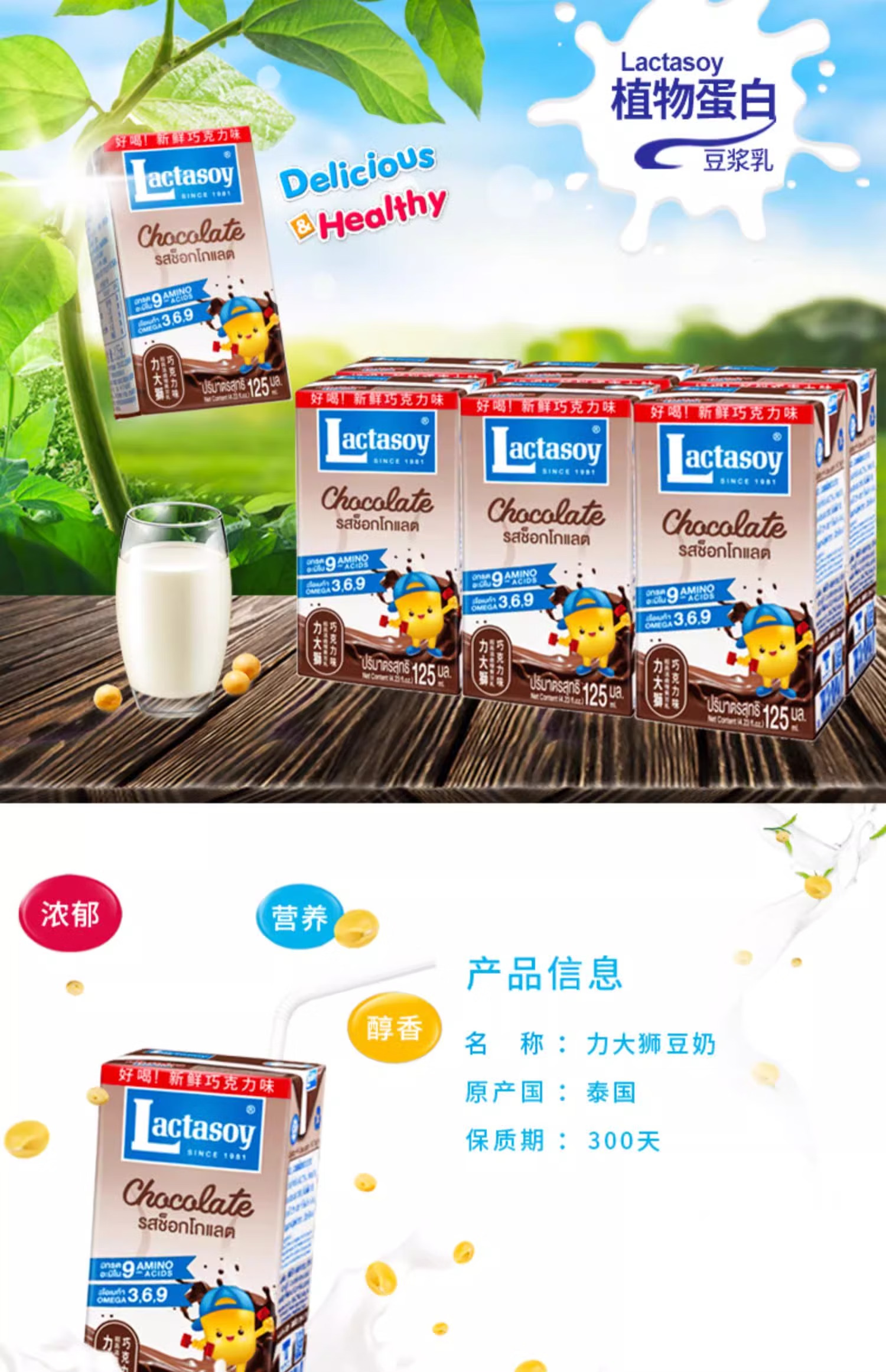 商品名称:Lactasoy/力大狮泰国进口巧克力味豆奶125ml*6瓶*3组