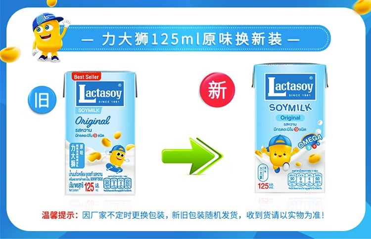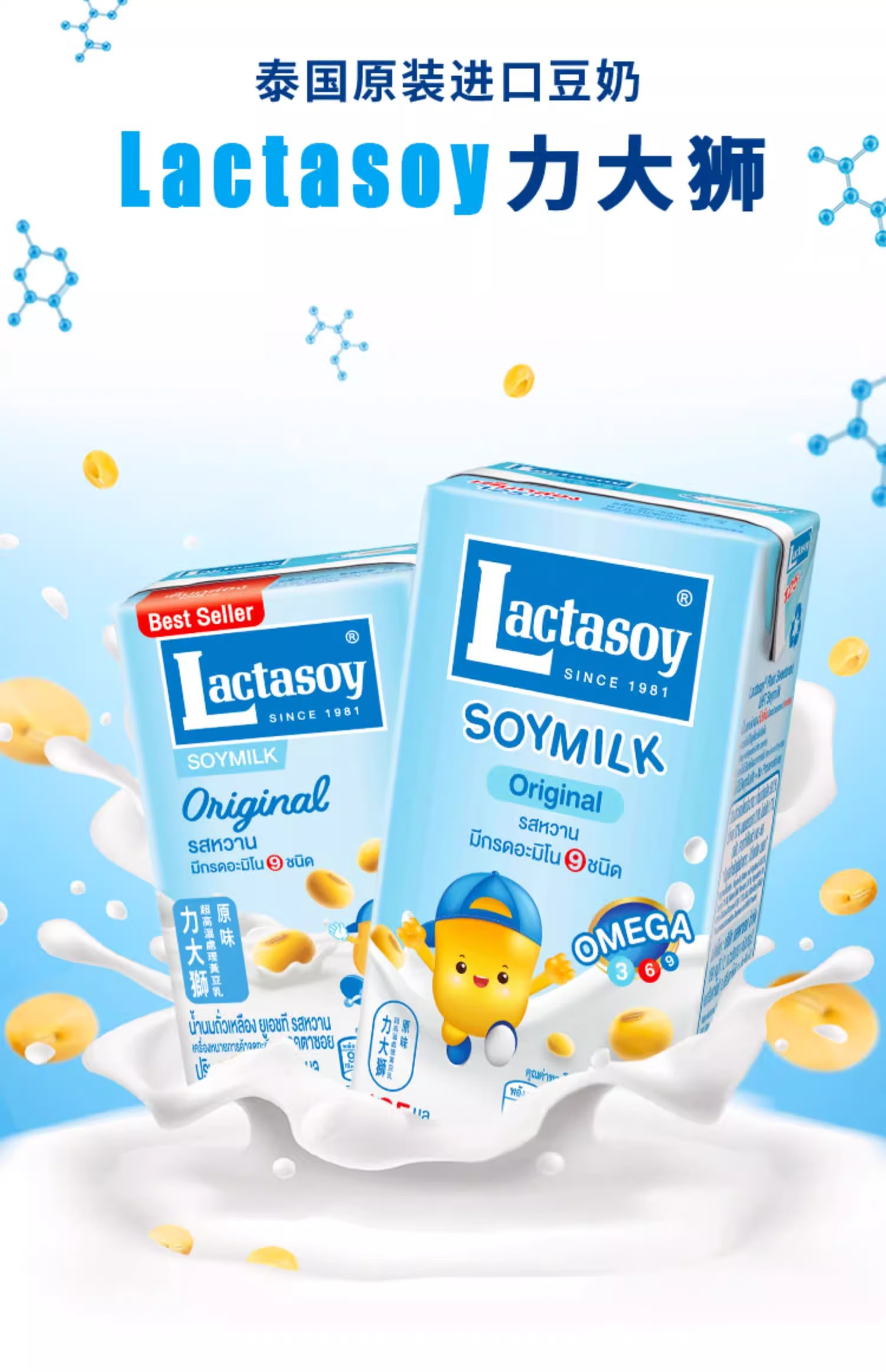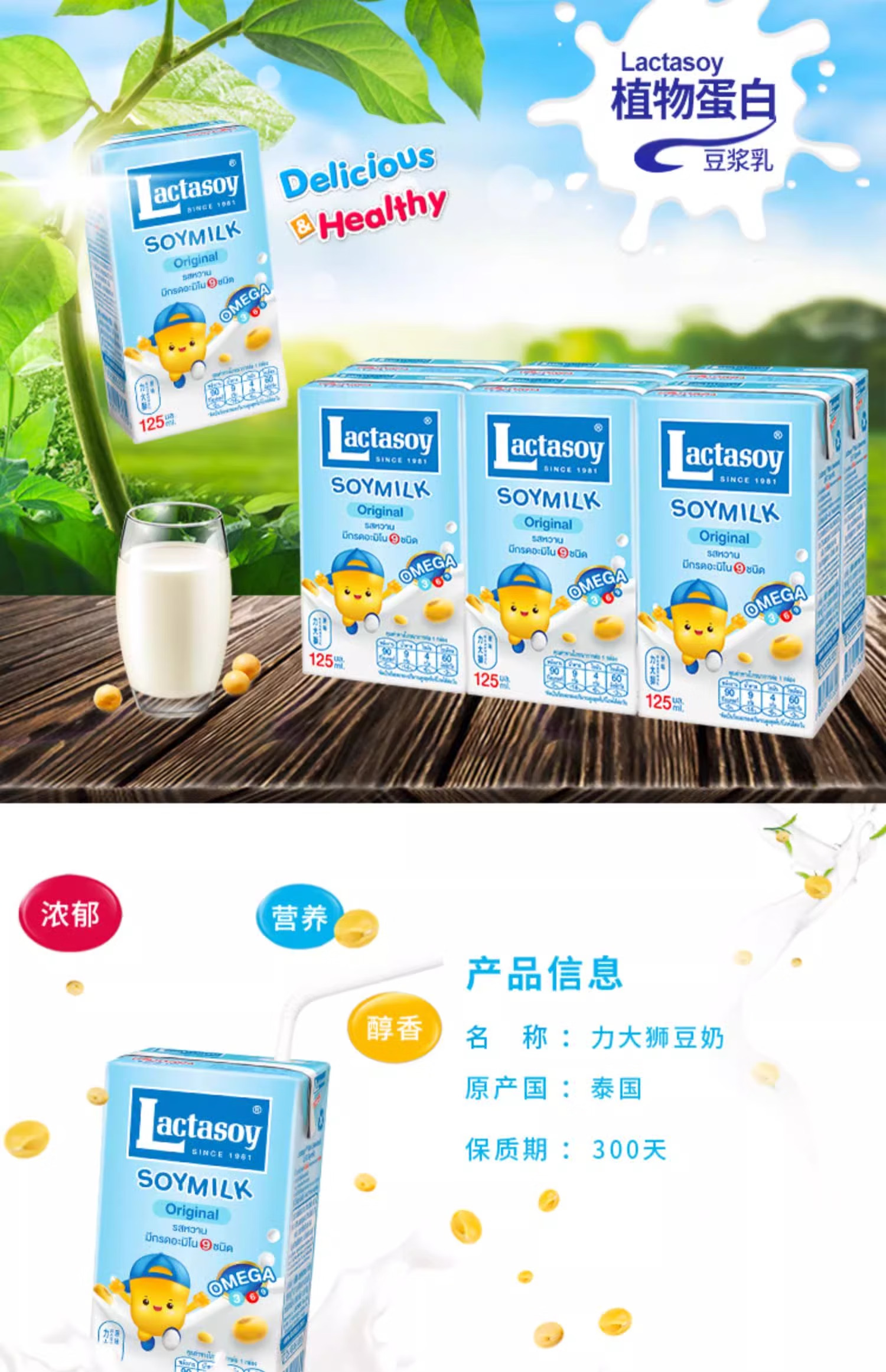 商品名称:Lactasoy/力大狮泰国进口原味豆奶125ml*6瓶*3组