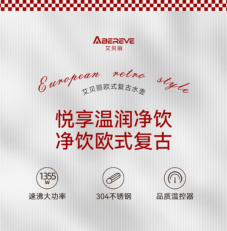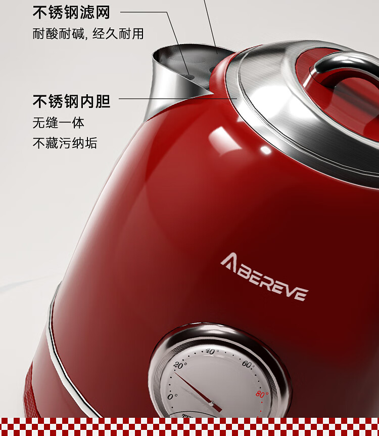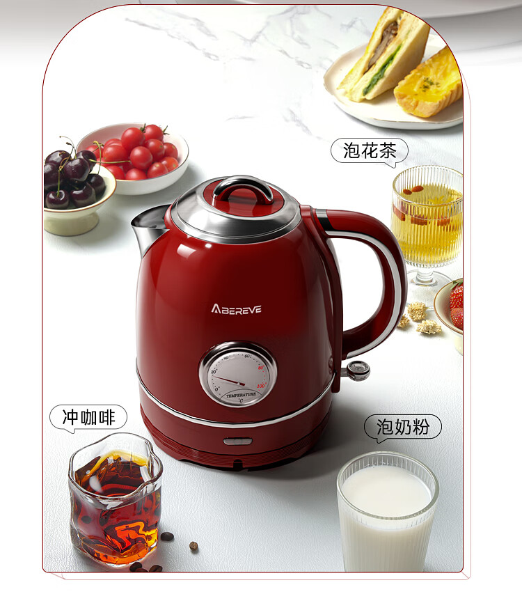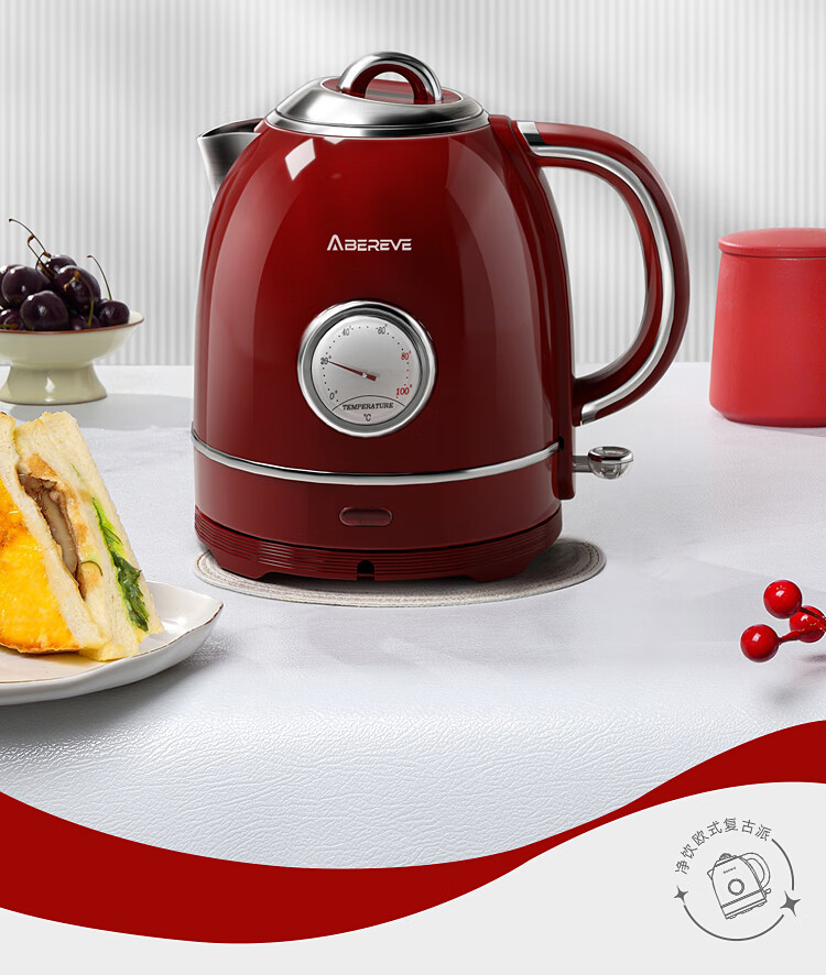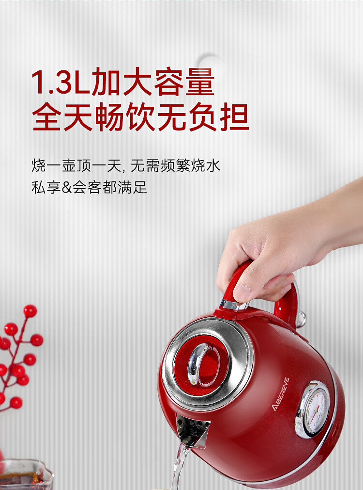 ABEREVE/艾贝丽1.3升欧式电热水壶-复古红ABL-SH1314