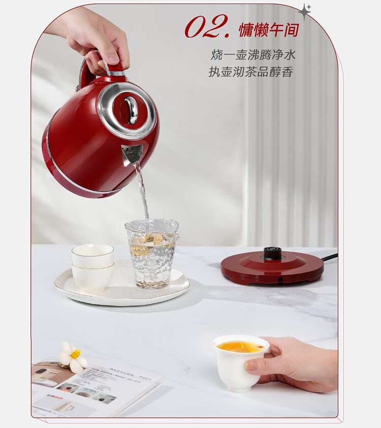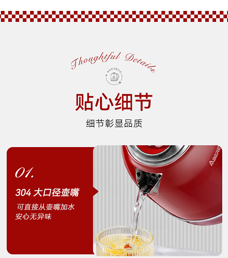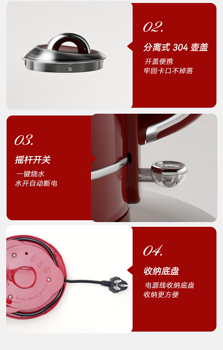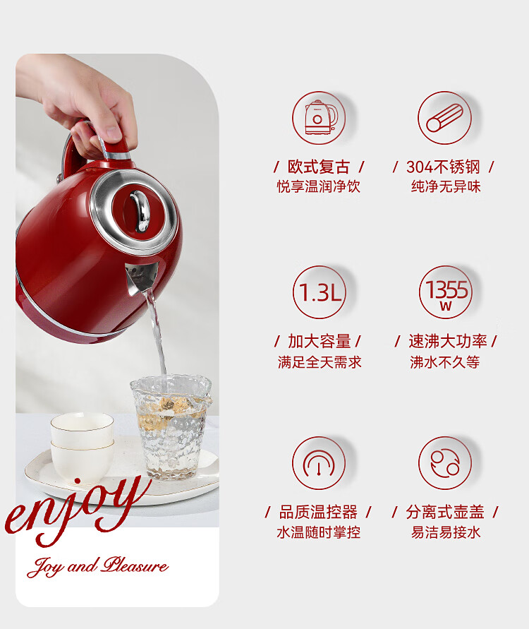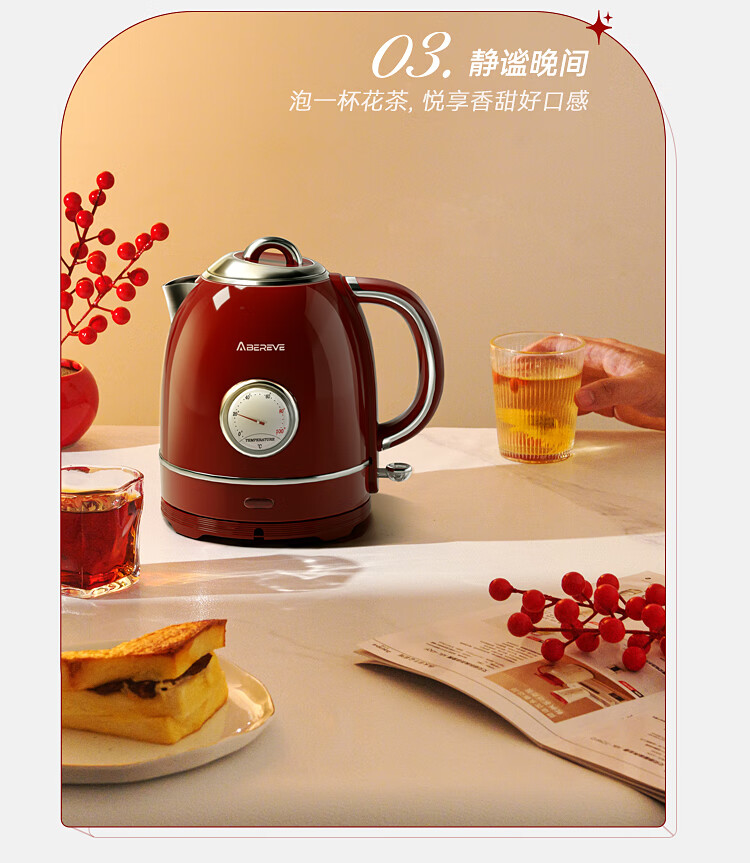 ABEREVE/艾贝丽1.3升欧式电热水壶-复古红ABL-SH1314