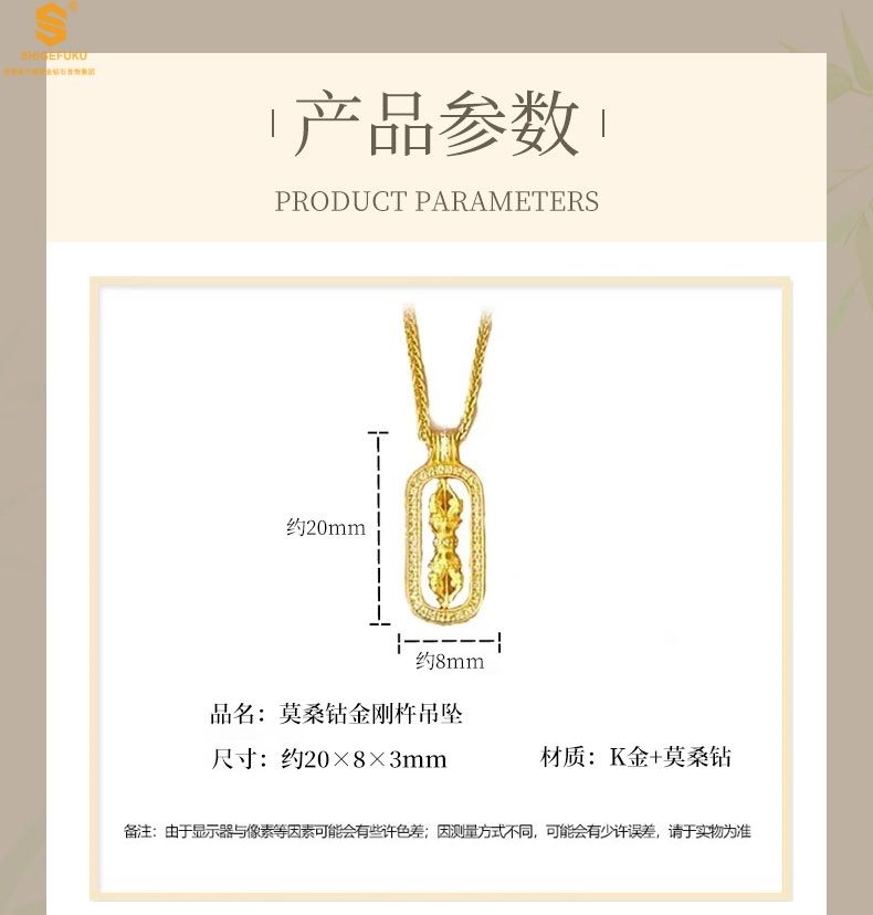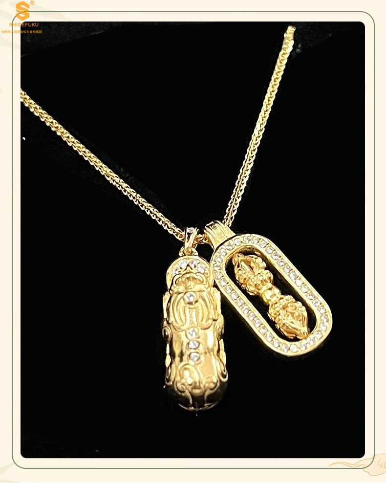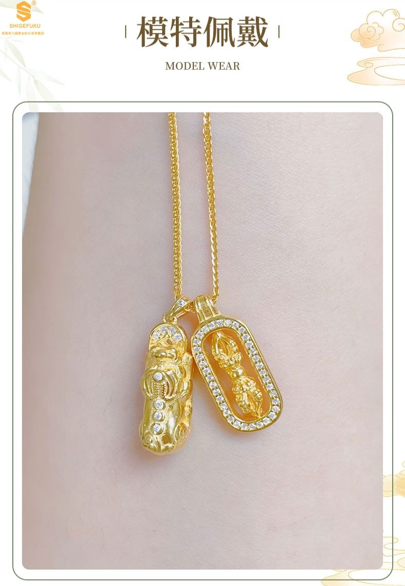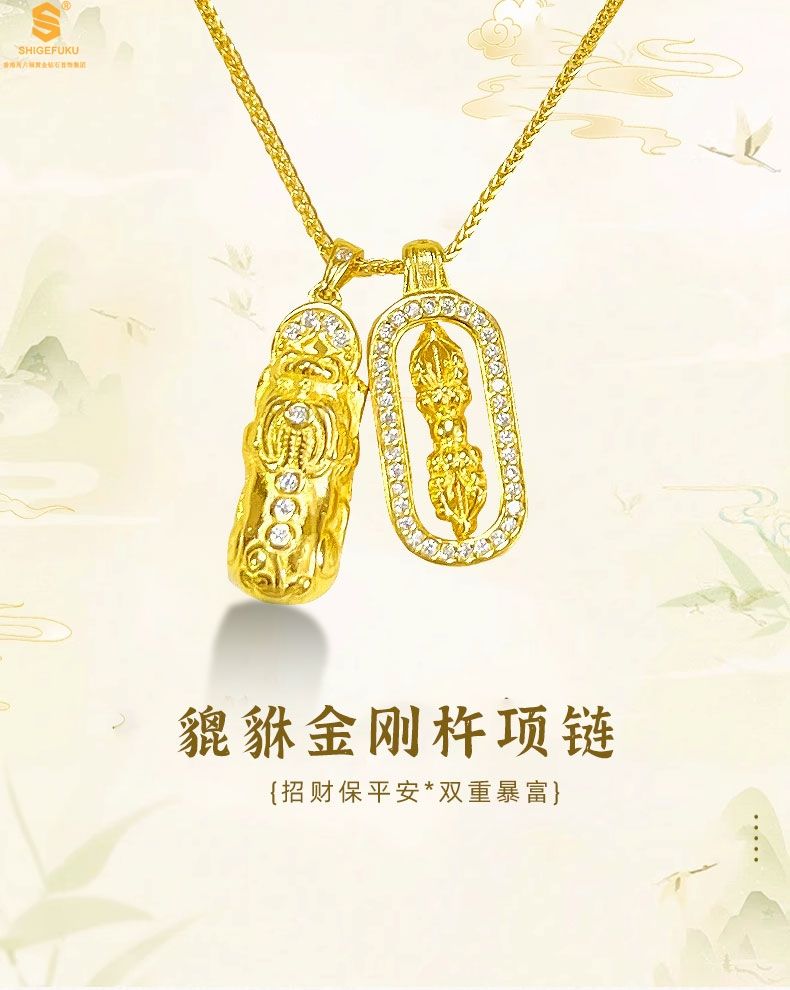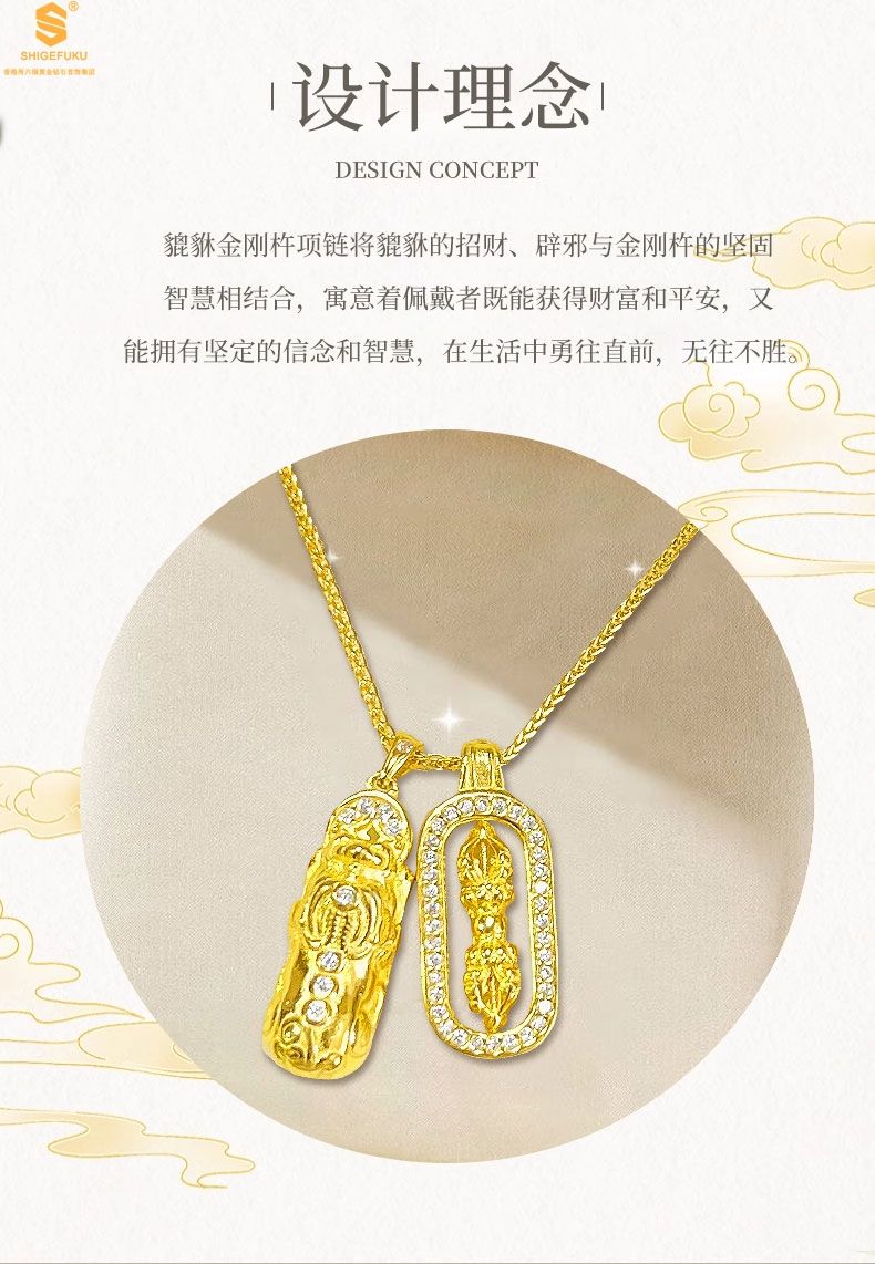 商品名称:香港周六福黄金钻石首饰招财貔貅平安金刚杵点钻叠戴项链