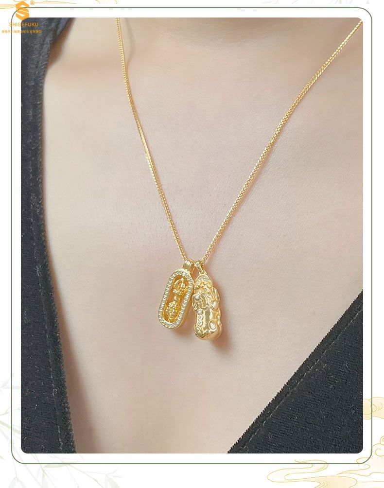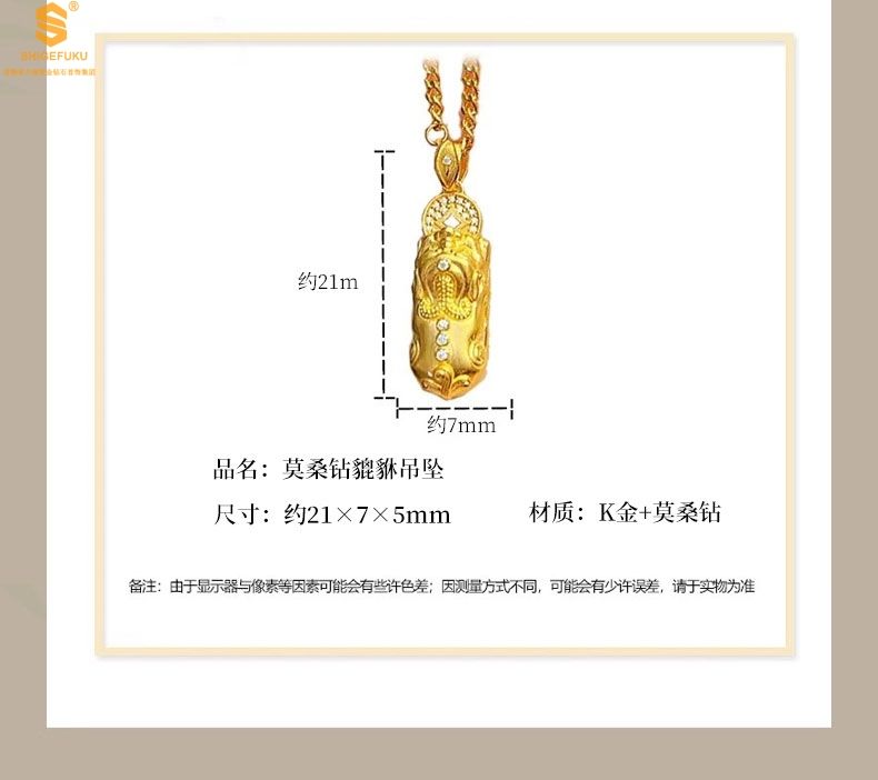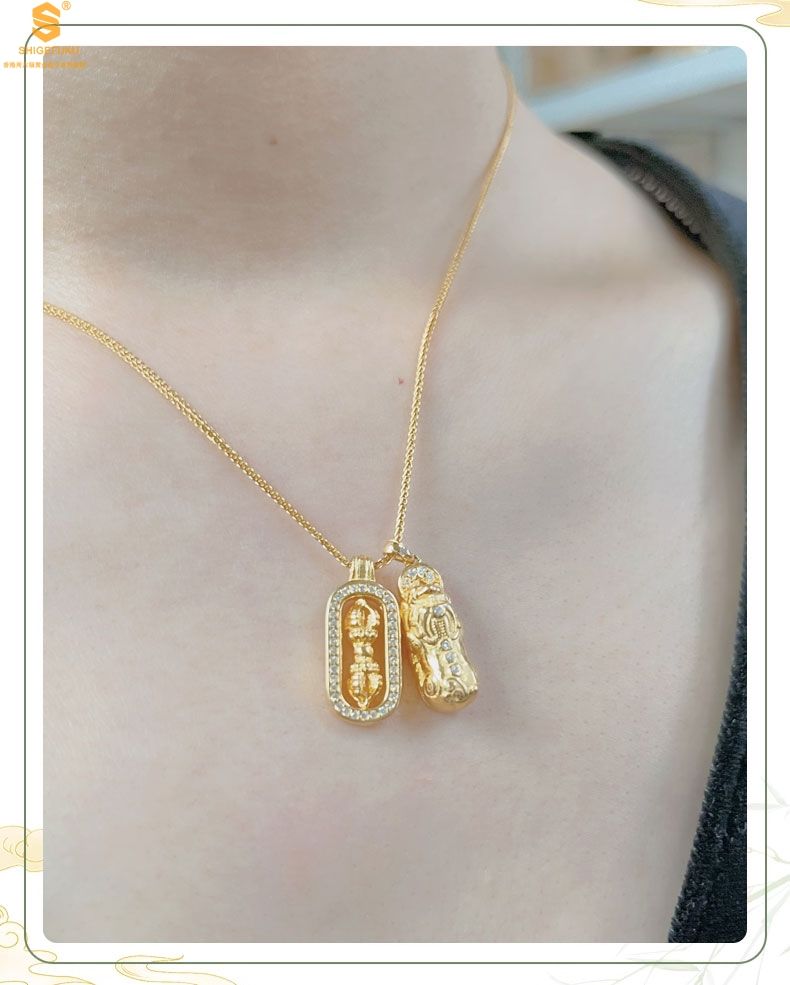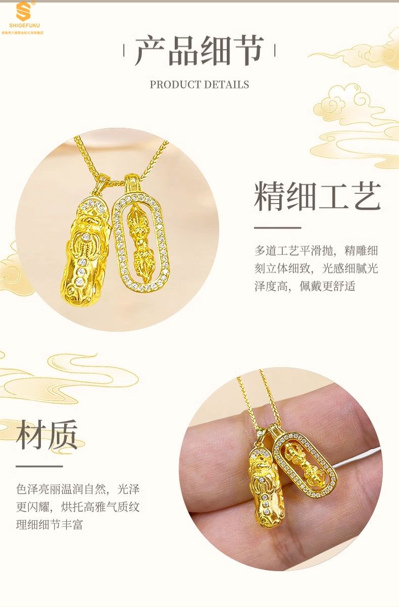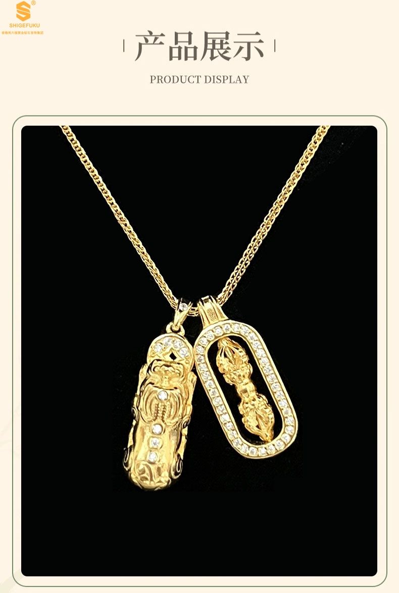 商品名称:香港周六福黄金钻石首饰招财貔貅平安金刚杵点钻叠戴项链