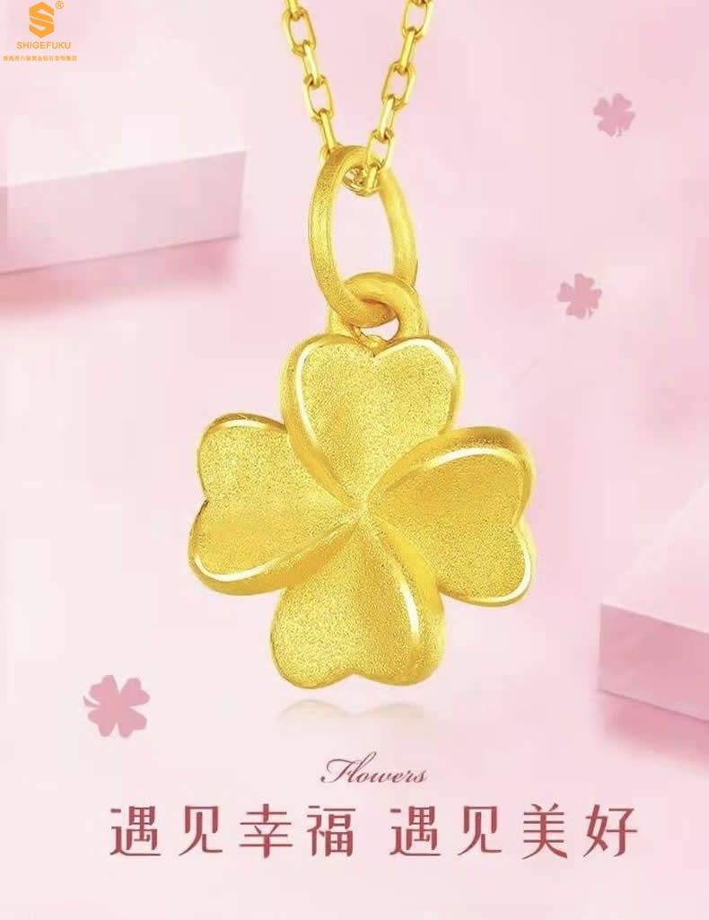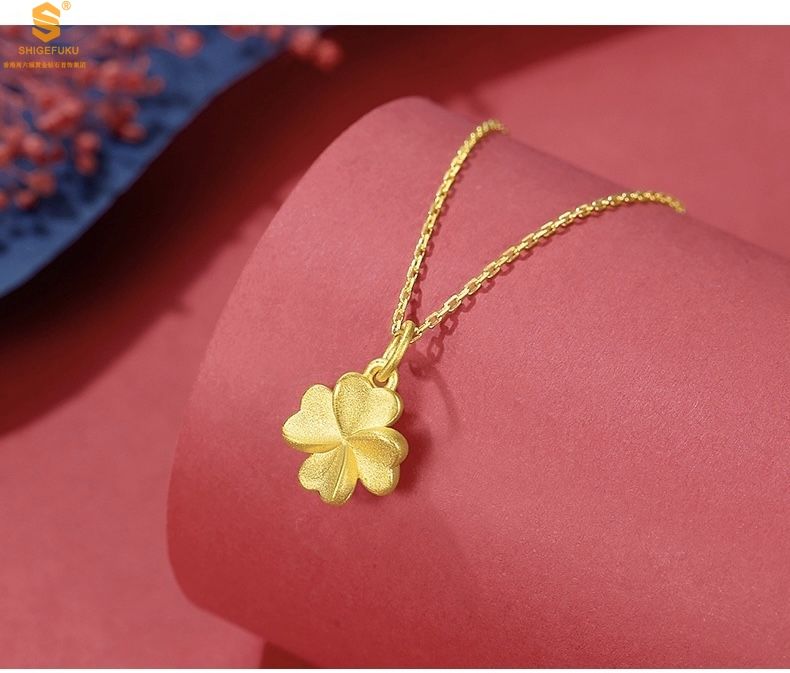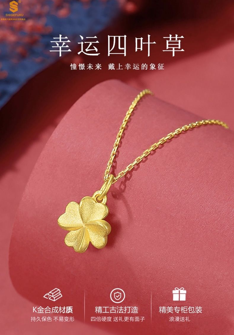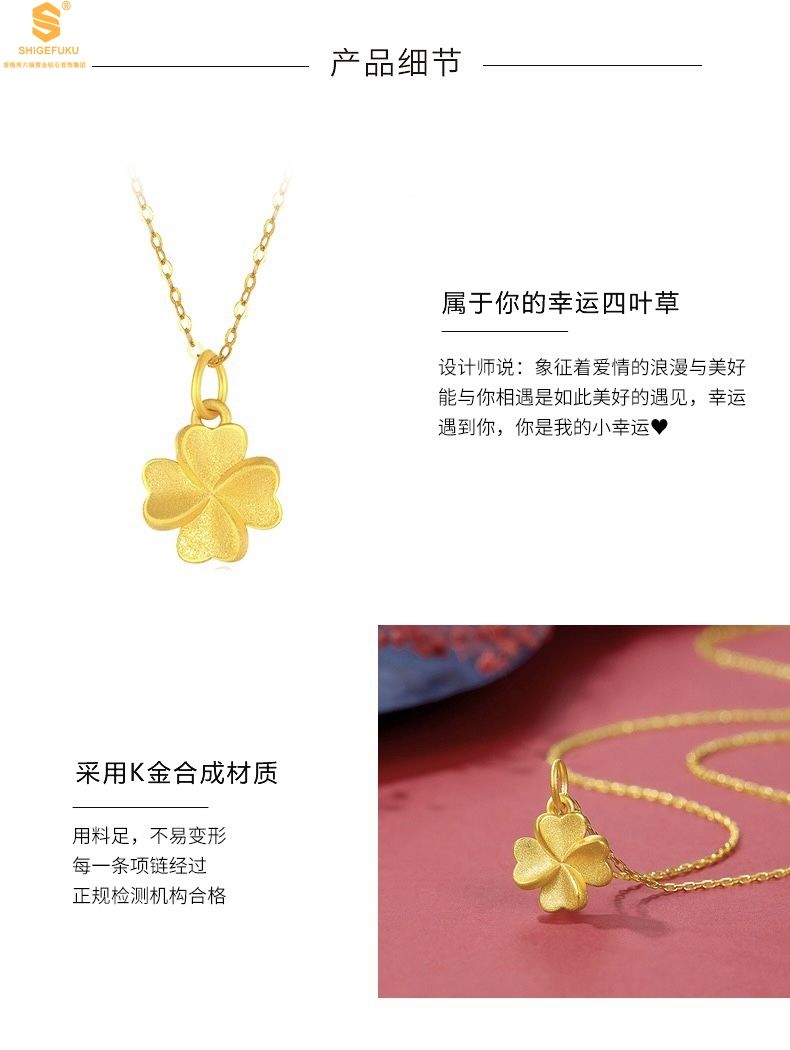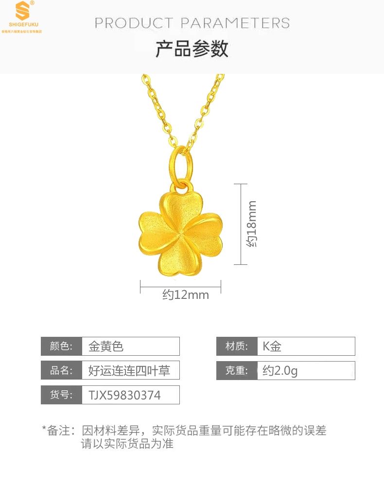 商品名称:香港周六福黄金钻石首饰好运连连四叶草K金吊坠(附赠K金项链)