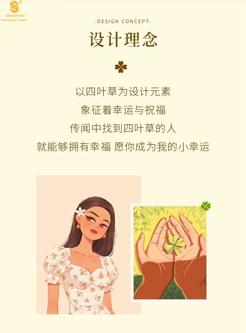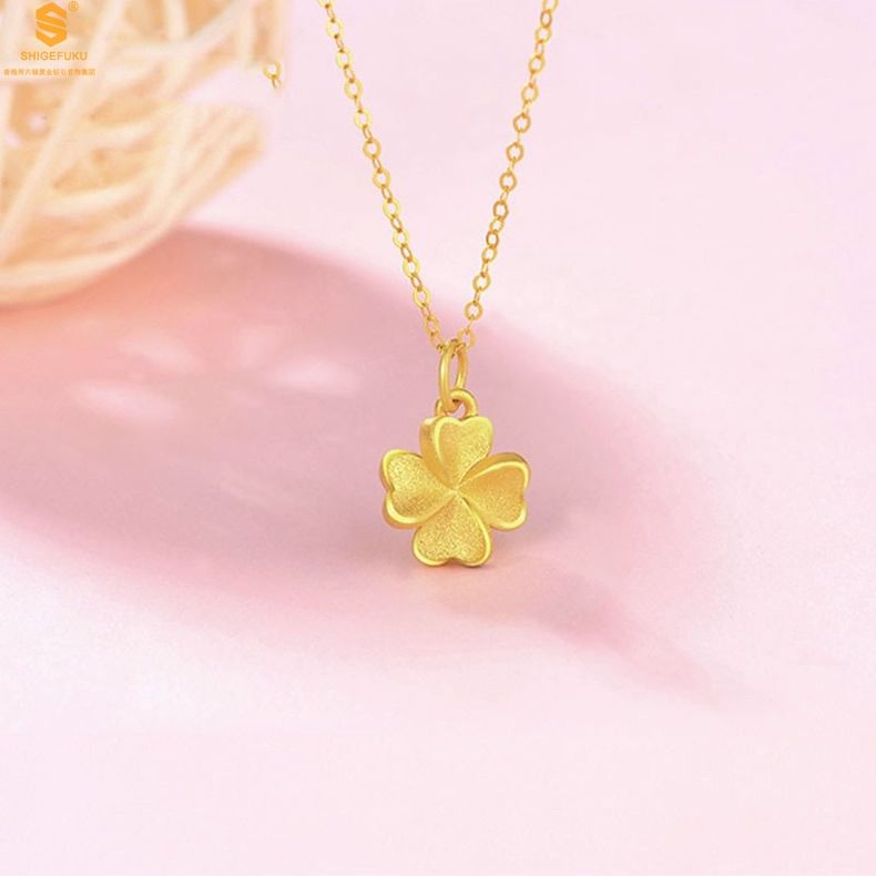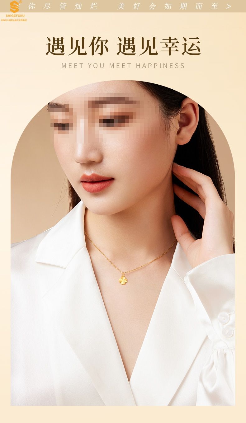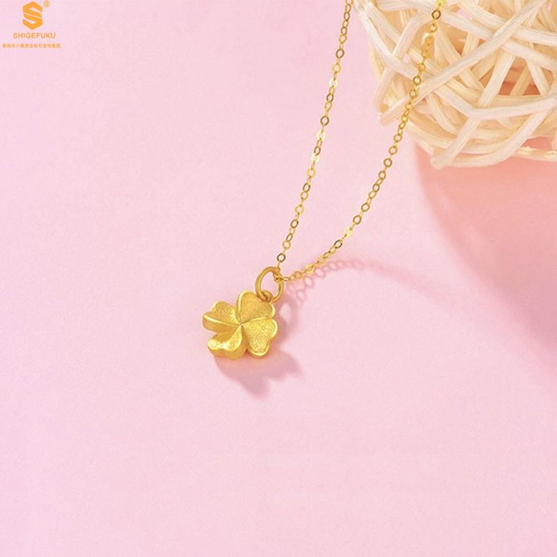 商品名称:香港周六福黄金钻石首饰好运连连四叶草K金吊坠(附赠K金项链)