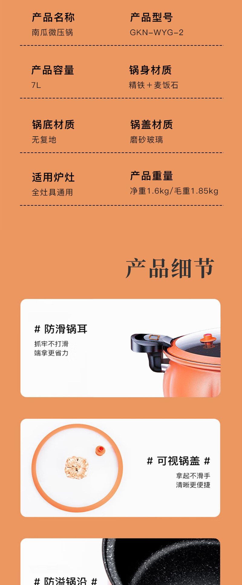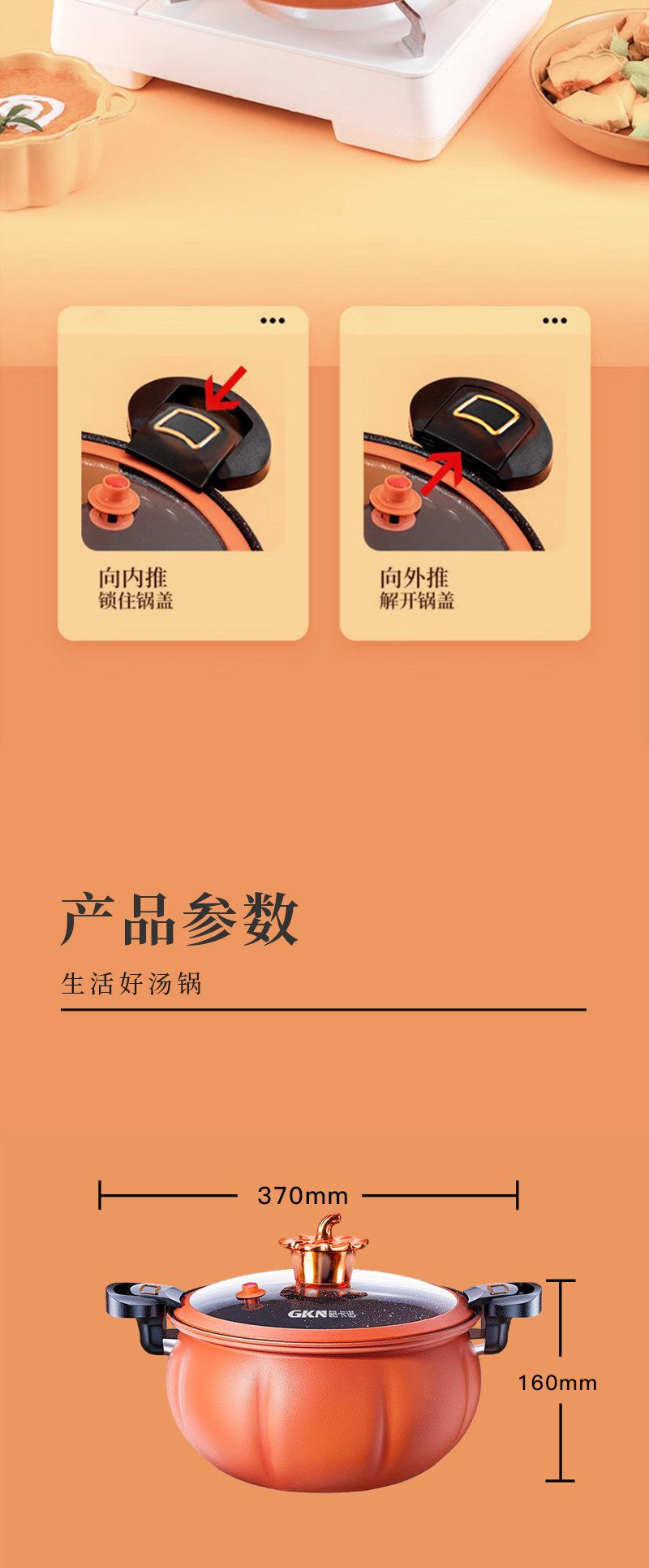 商品名称:格卡诺微压南瓜锅家用多功能不粘压压力锅大容量煲汤锅新款GKN-WYG-2
