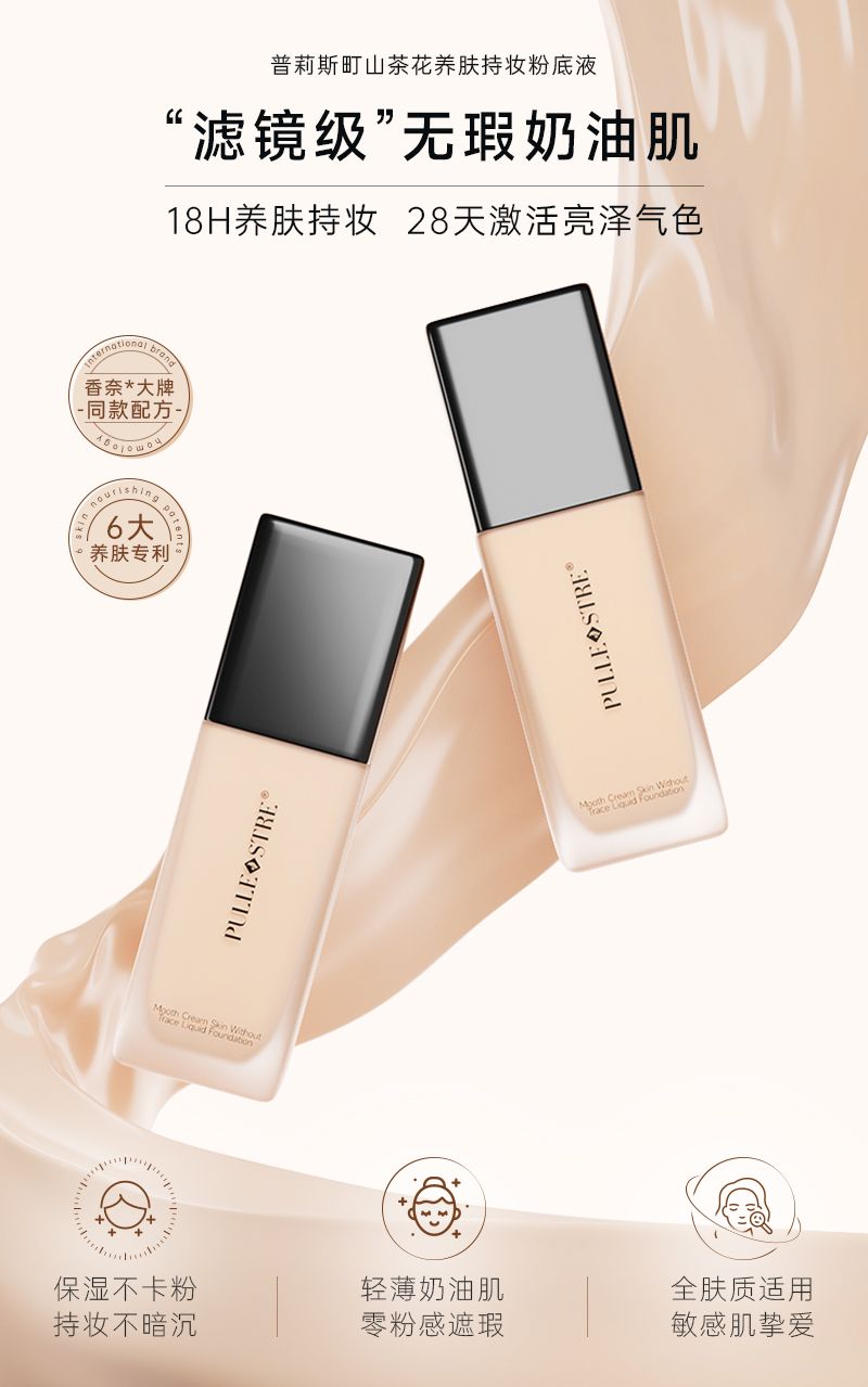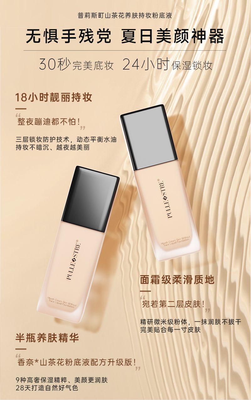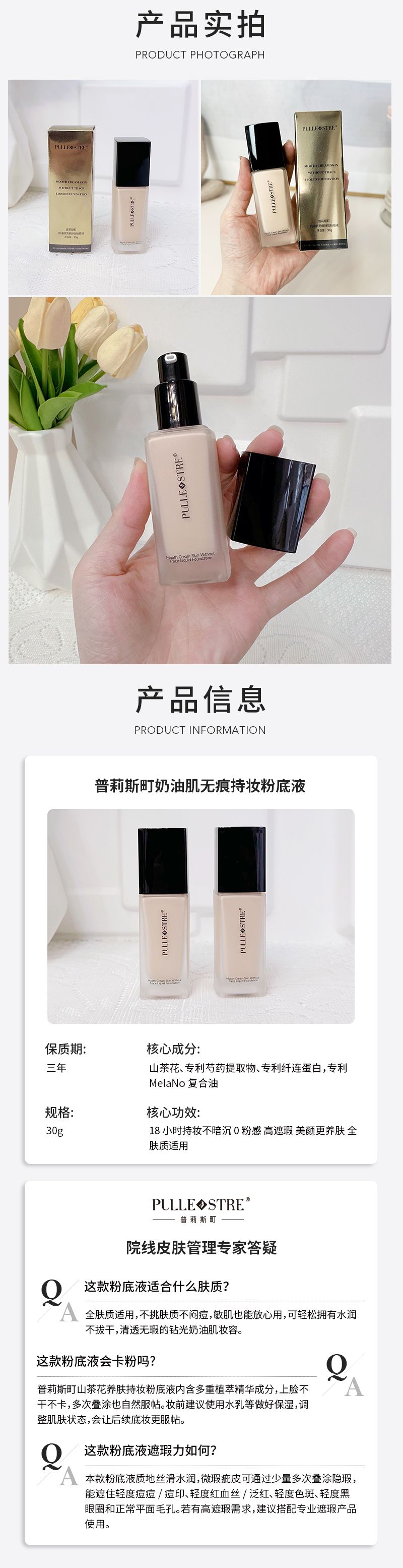 商品名称:PULLE STRE/普莉斯町 奶油肌无痕持妆粉底液30g/瓶【买一送一,到手2瓶,下单额外加赠美妆蛋2个】