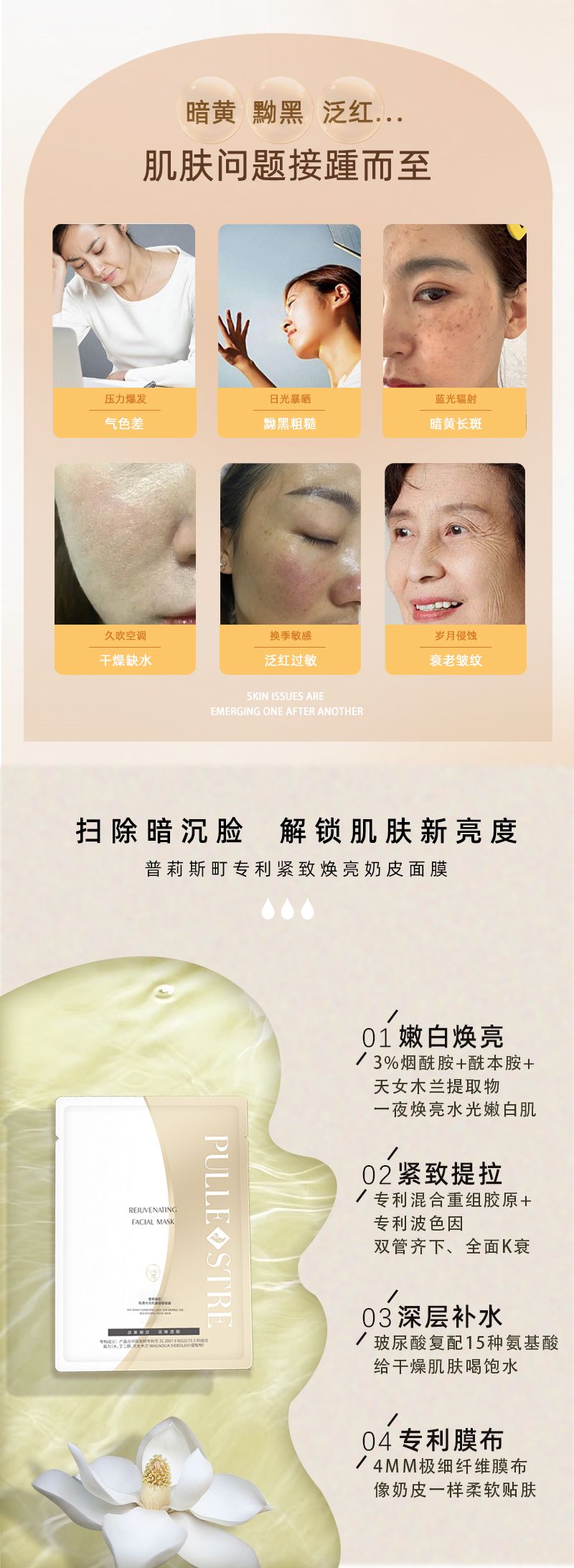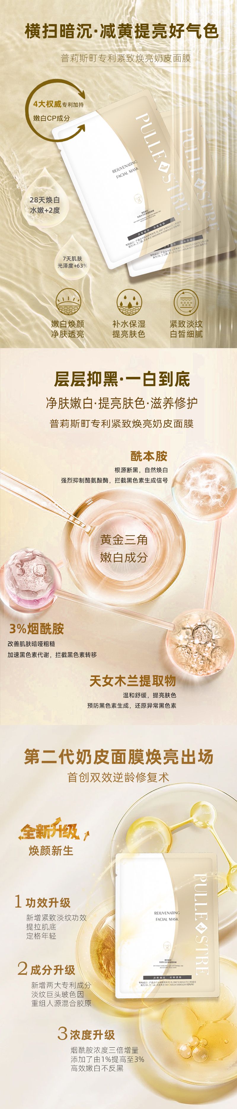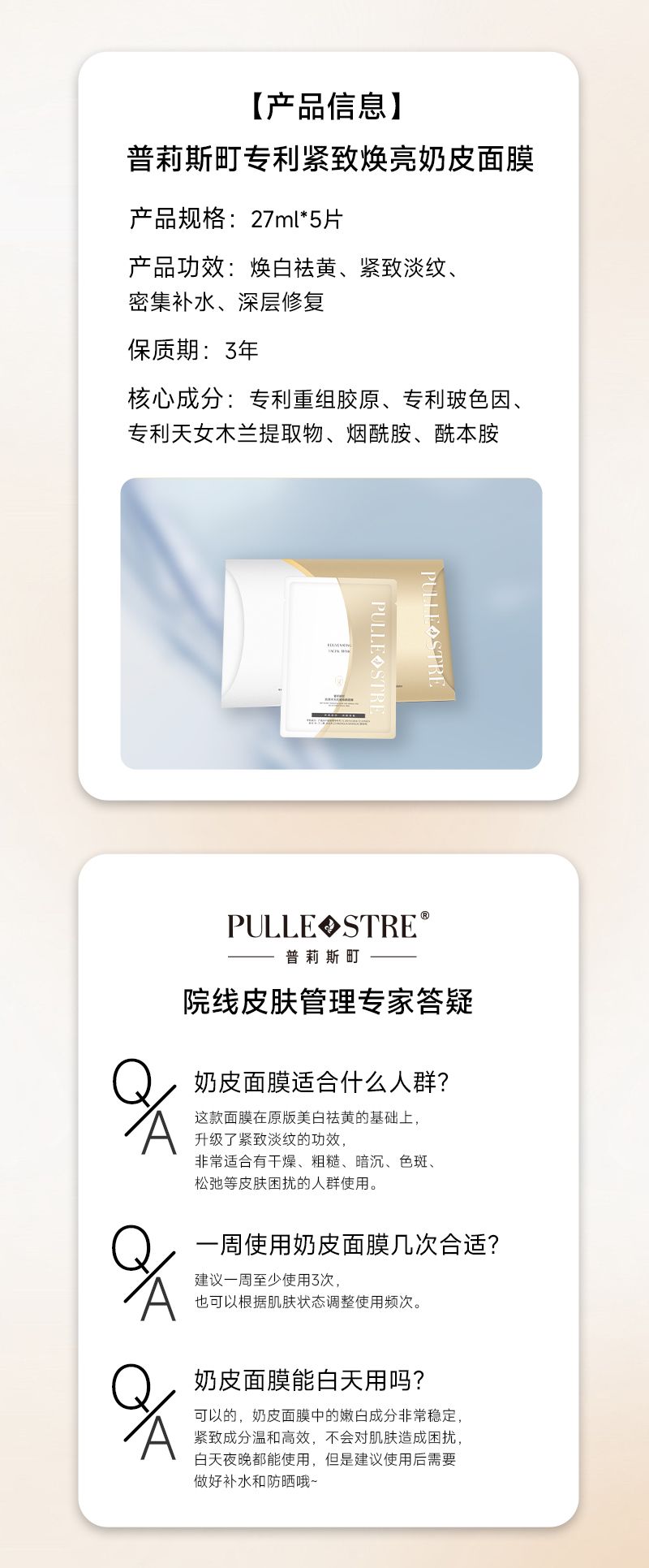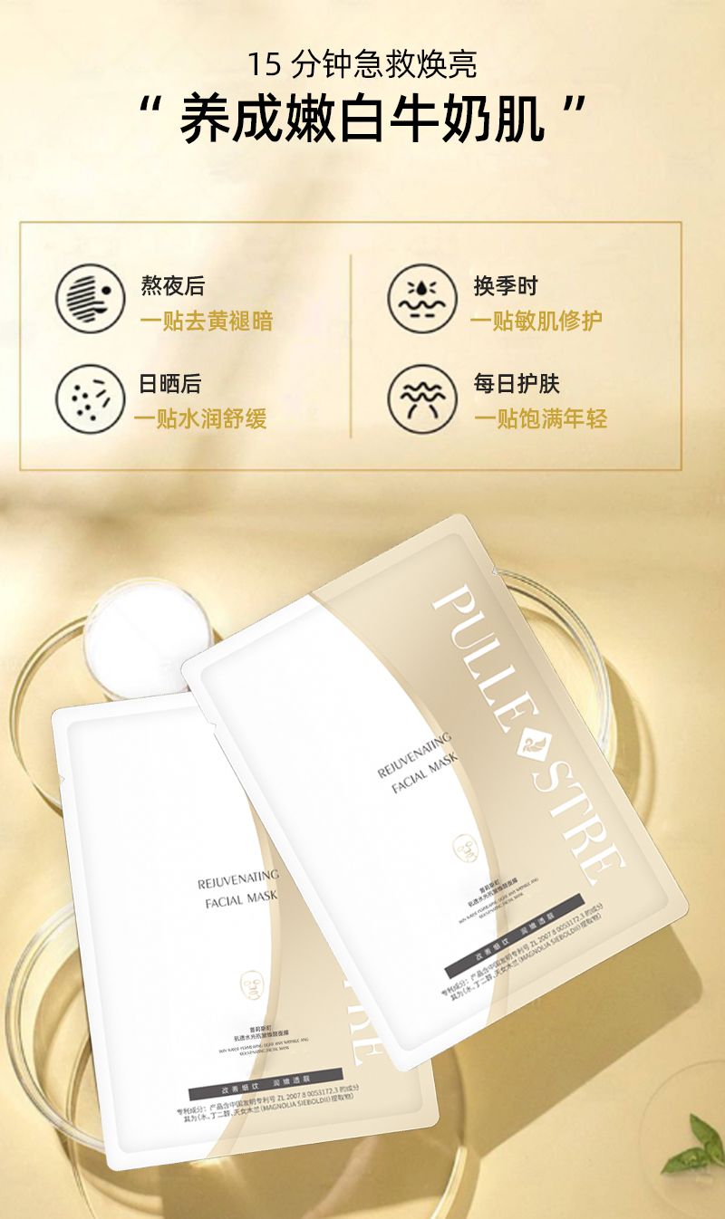 商品名称:PULLE STRE/普莉斯町 肌透水光焕颜面膜27ml*5片*3盒【【买三送二,99到手5盒,合计25片】