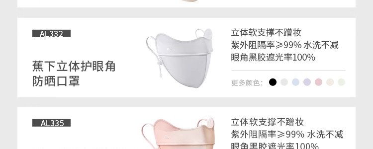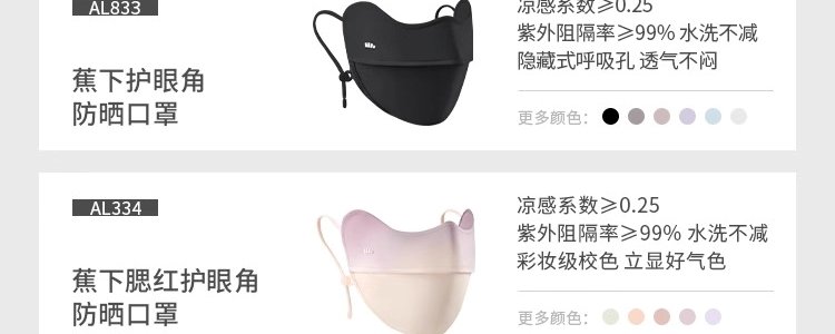 蕉下(beneunder)腮红护眼角防晒口罩 AL33424 烟粉豆沙 均码