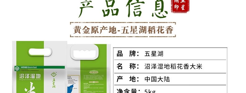 商品名称:五星湖 沼泽湿地稻花香 5kg/袋